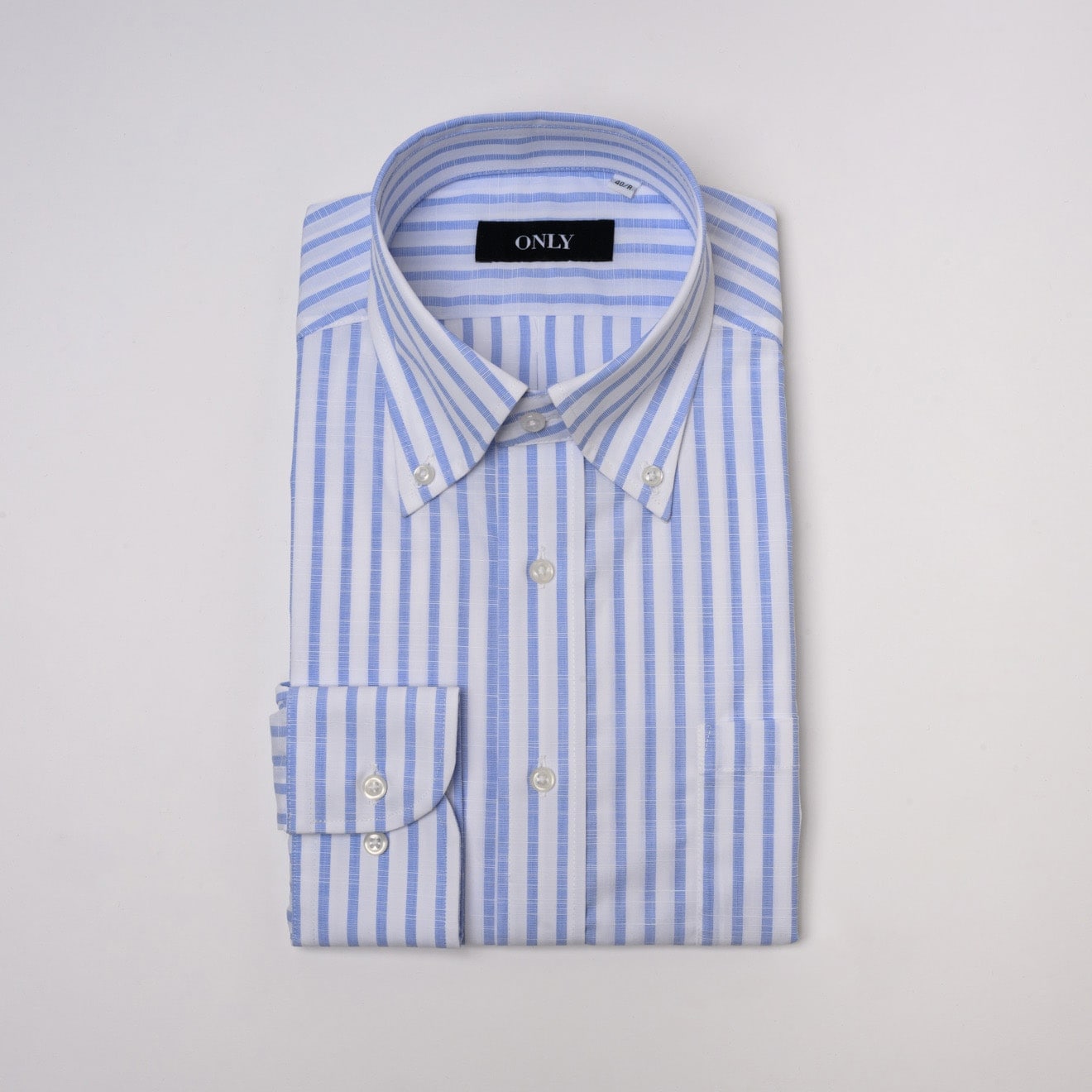 ≪WEB新作≫PREMIO/綿100%/スリムフィット/ボタンダウンカラー/ブルー/ストライプ/シャツ