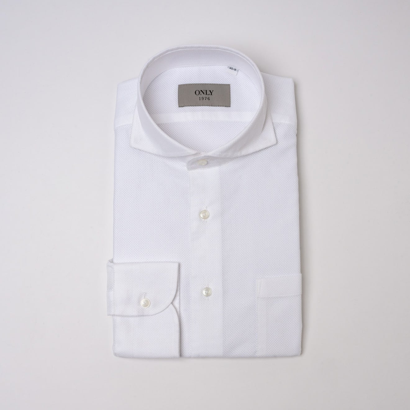 ≪WEB新作≫EASY CARE/スナップボタン/からみ織/スリムフィット/カッタウェイ/ホワイト/無地/シャツ