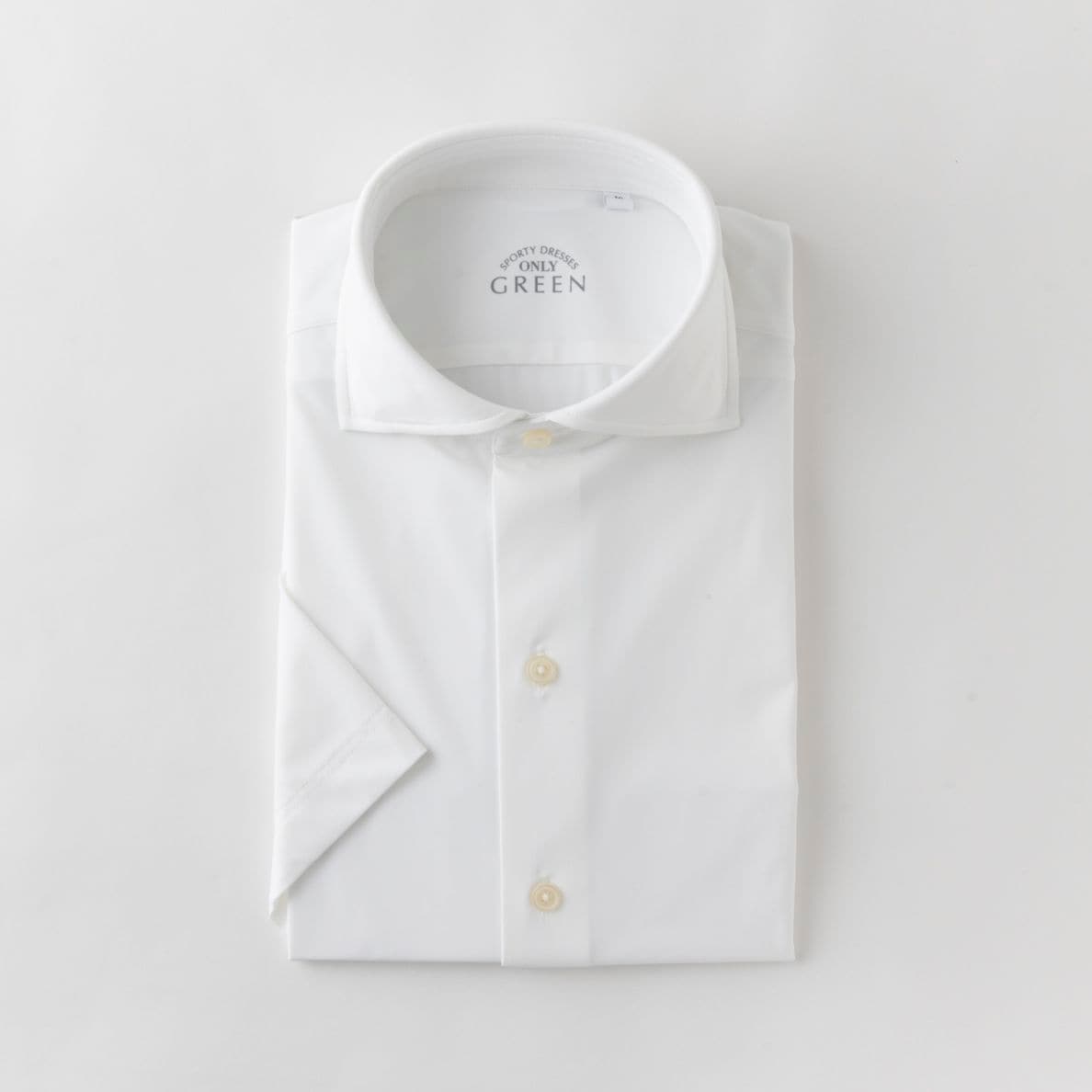 ≪超特価≫GREEN/形態安定/速乾性/ナイロンストレッチ/ホリゾンタル/ホワイト/無地/半袖/シャツ