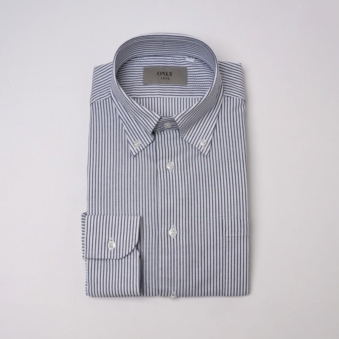 ≪WEB価格≫からみ織/スリムフィット/ボタンダウン/ブルー/ストライプ/シャツ