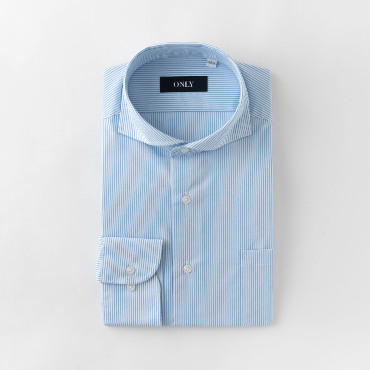 ≪WEB価格≫形態安定/EASY CARE/スリムフィット/カッタウェイ/スナップボタン/ブルー/ストライプ/シャツ