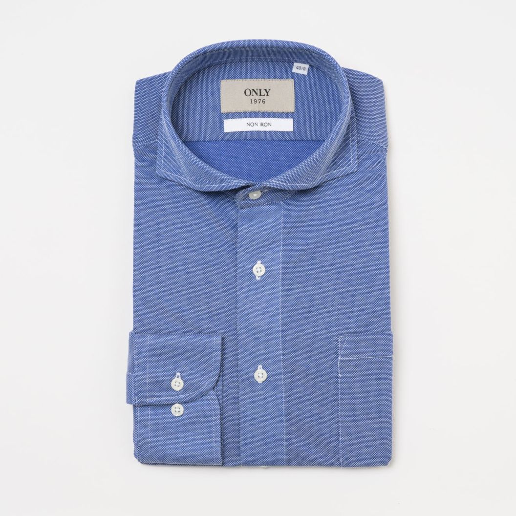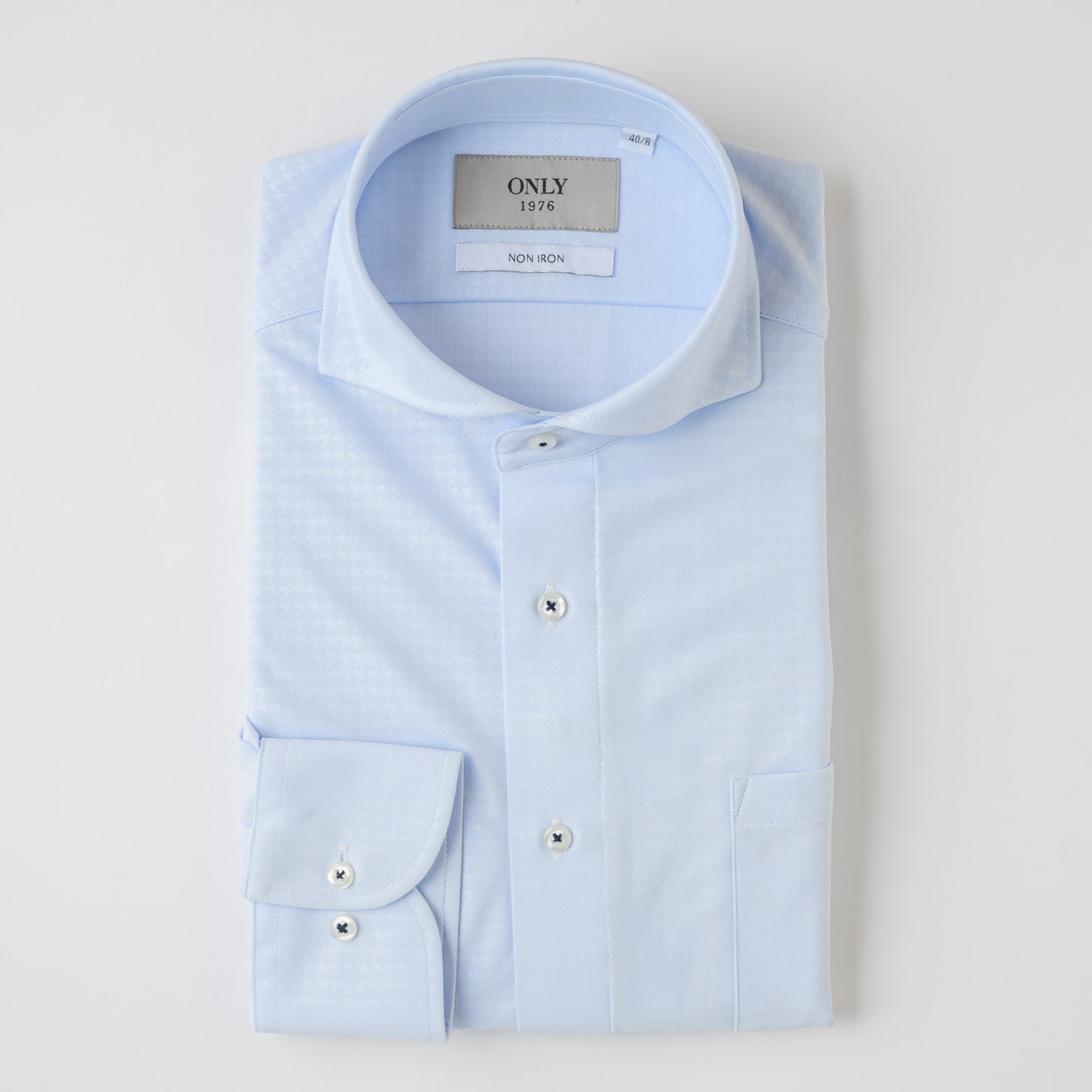 ≪WEB新作≫綿100%/ノンアイロン/防シワ性/カッタウェイ/サックス/無地/シャツ