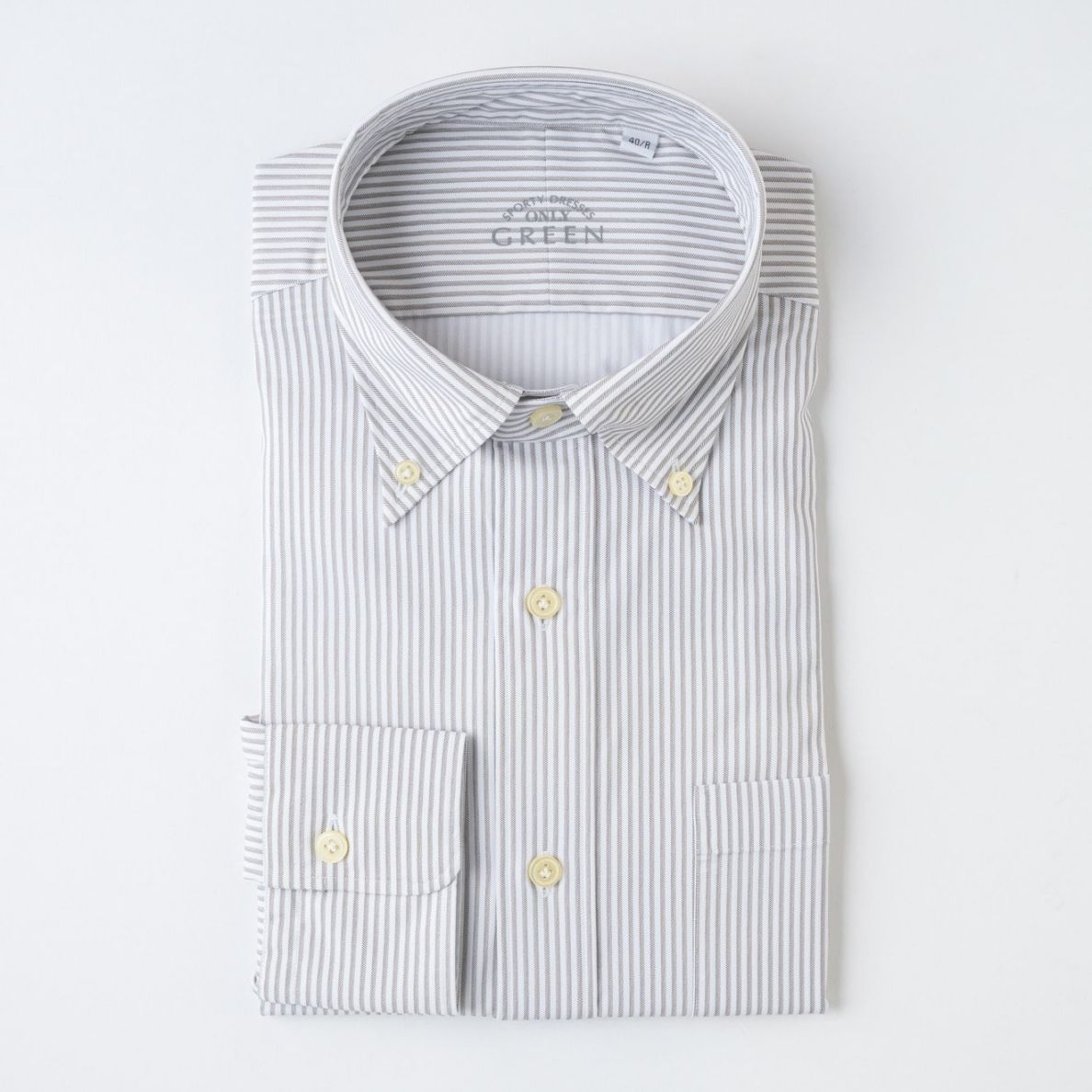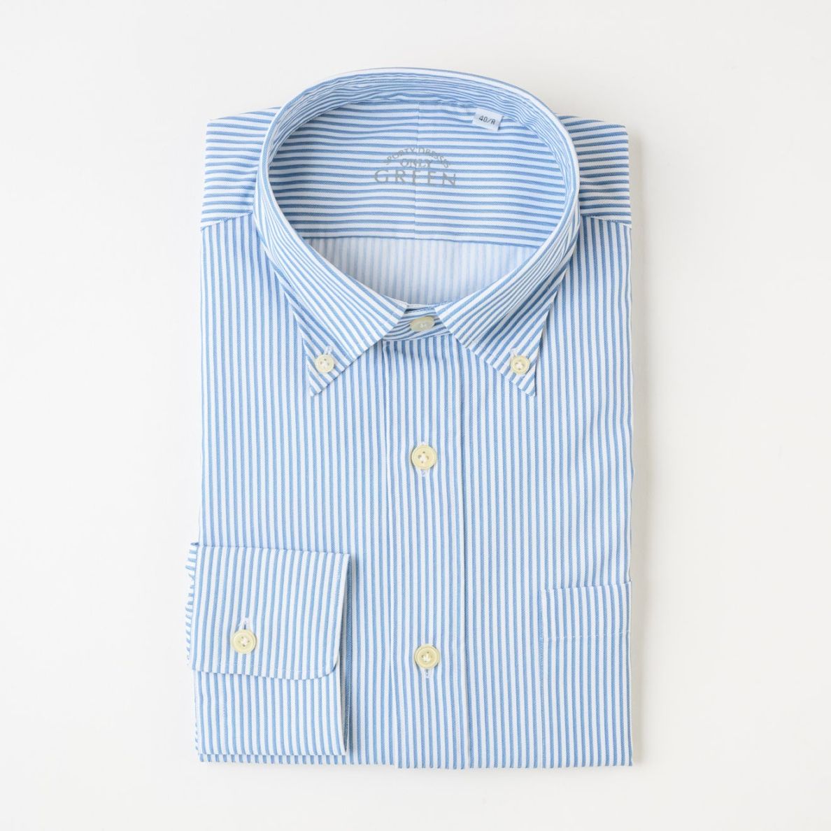 ≪WEB価格≫形態安定/EASY CARE/スリムフィット/ボタンダウン/グリーン/ストライプ/シャツ