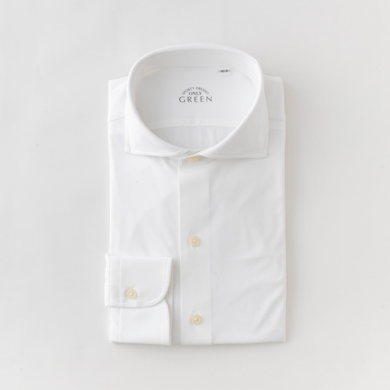 ≪WEB新作≫驚異の伸縮性/GREEN/ホリゾンタル/ナイロン/ストレッチ/ホワイト/無地/シャツ