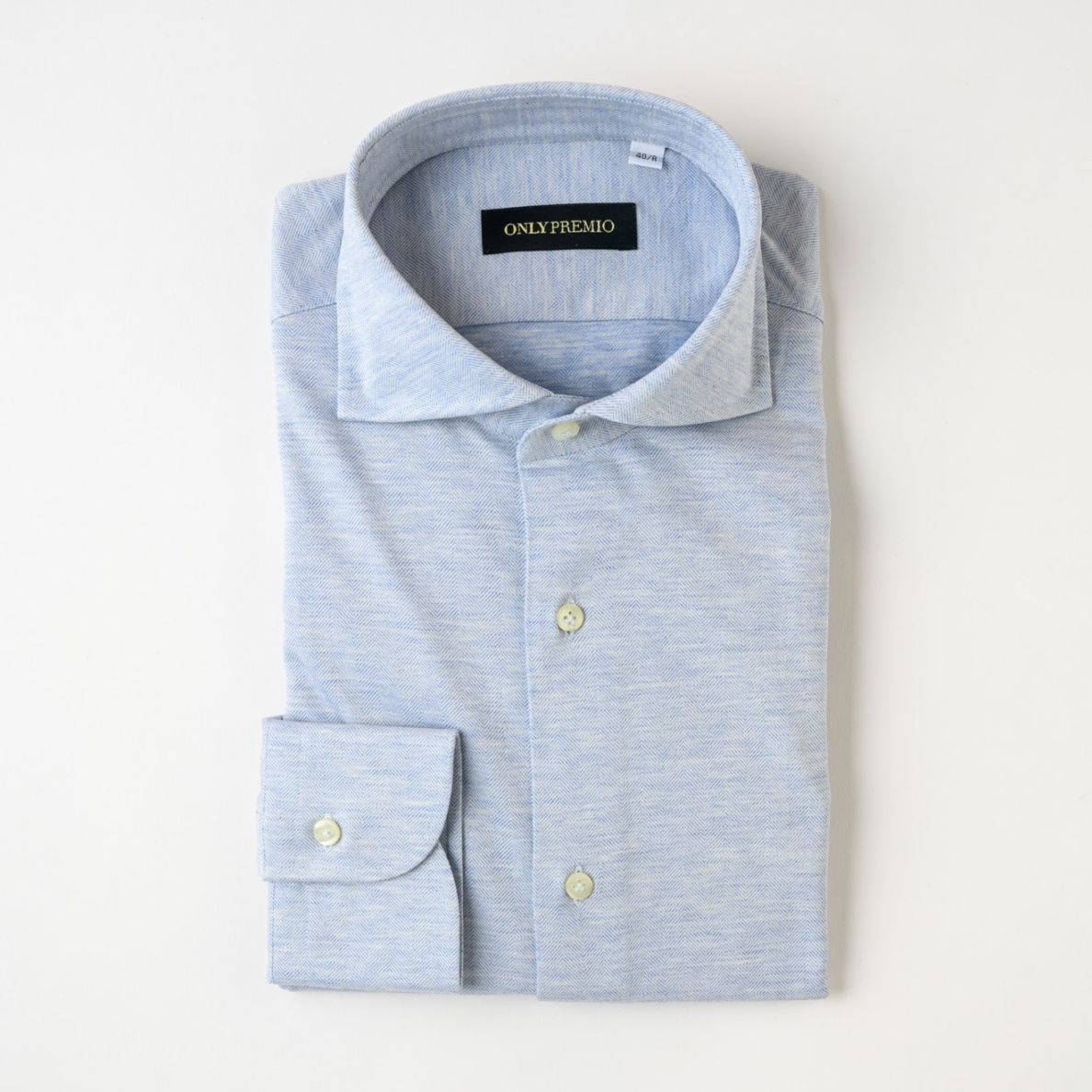 ≪WEB新作≫PREMIO/イタリアンテーラリング/スリムフィット/ストレッチ/サックス/柄無地/シャツ