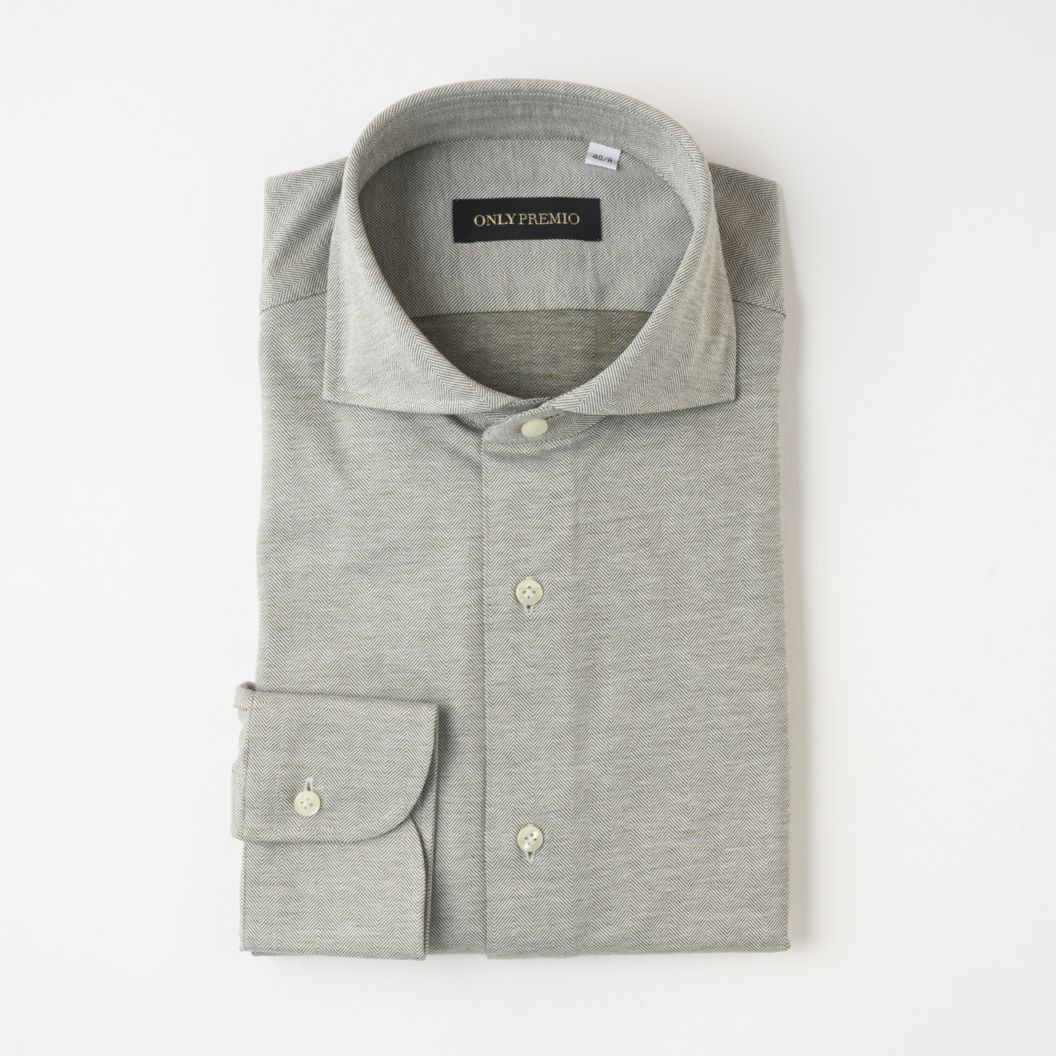 ≪WEB新作≫PREMIO/EASYCARE/形態安定/スリムフィット/ホリゾンタルカラー/ライトグレー/無地/シャツ