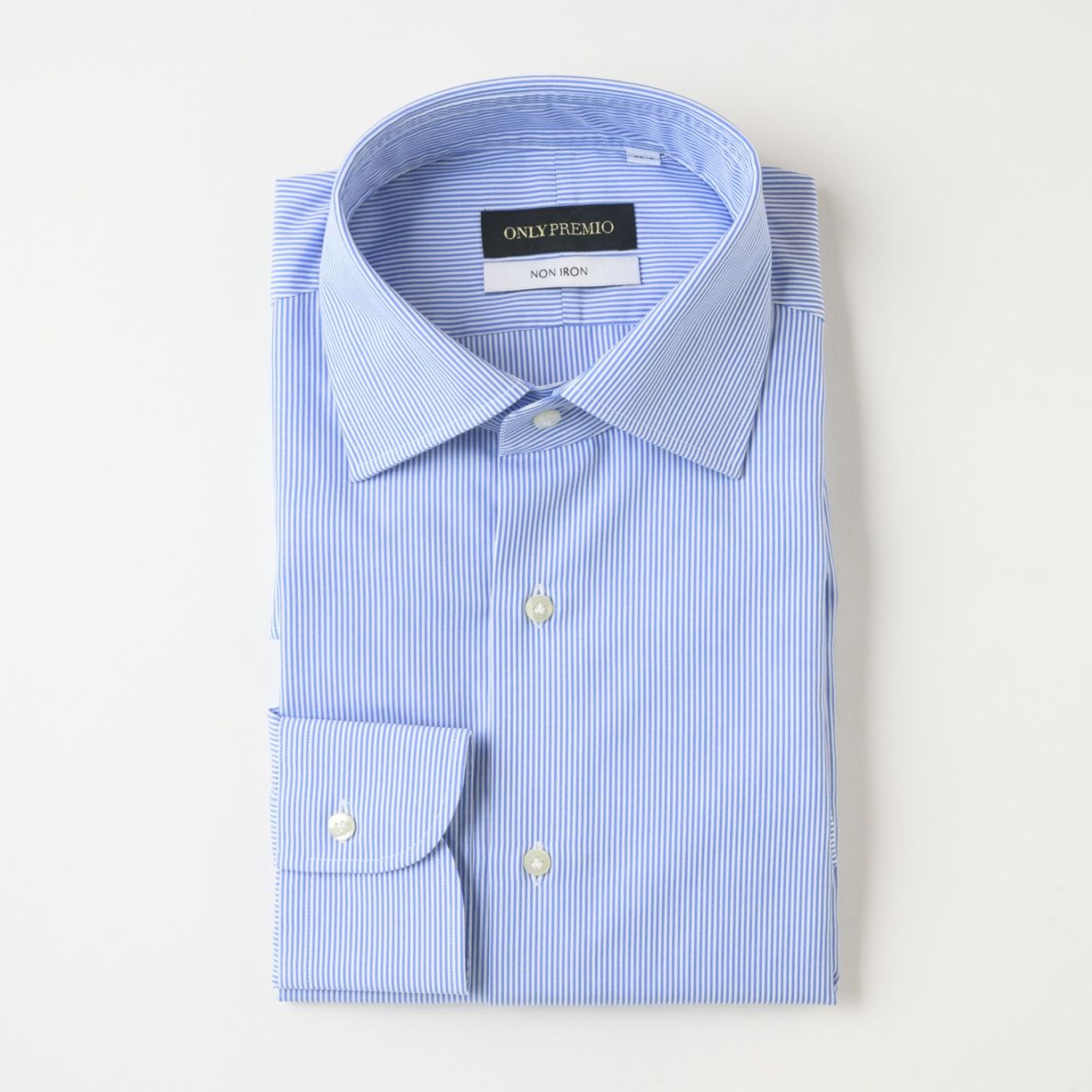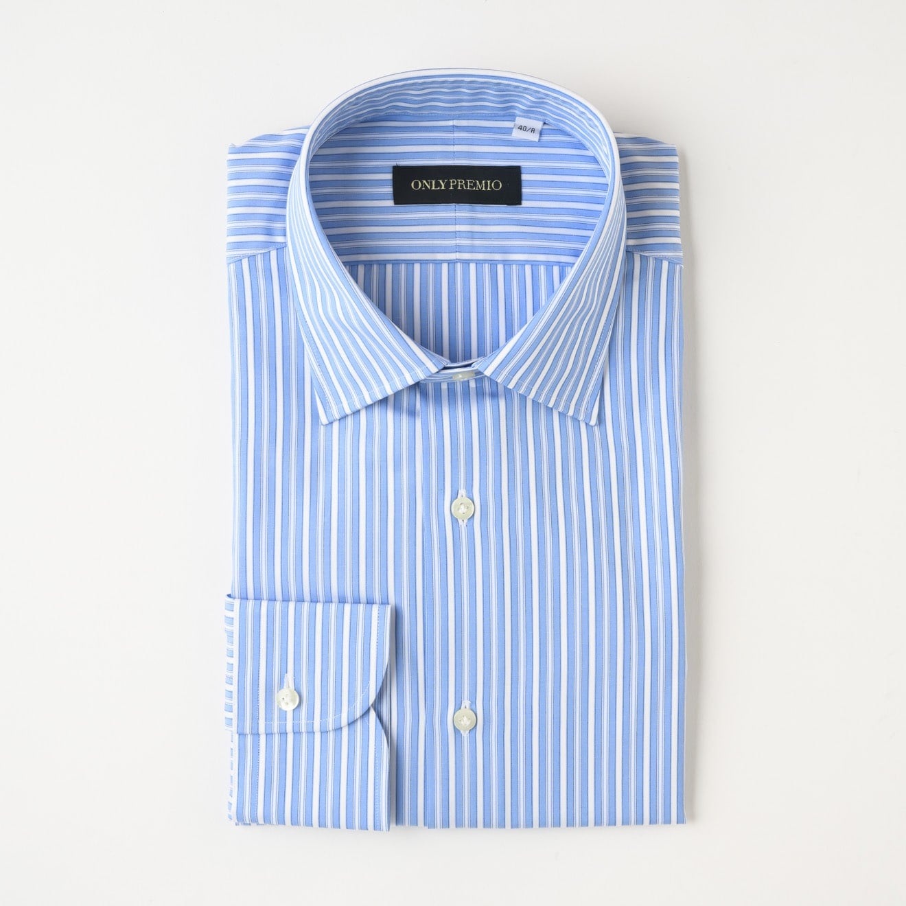 ≪WEB新作≫PREMIO/120番手双糸/綿100%/レギュラー/サックス/ストライプ/シャツ