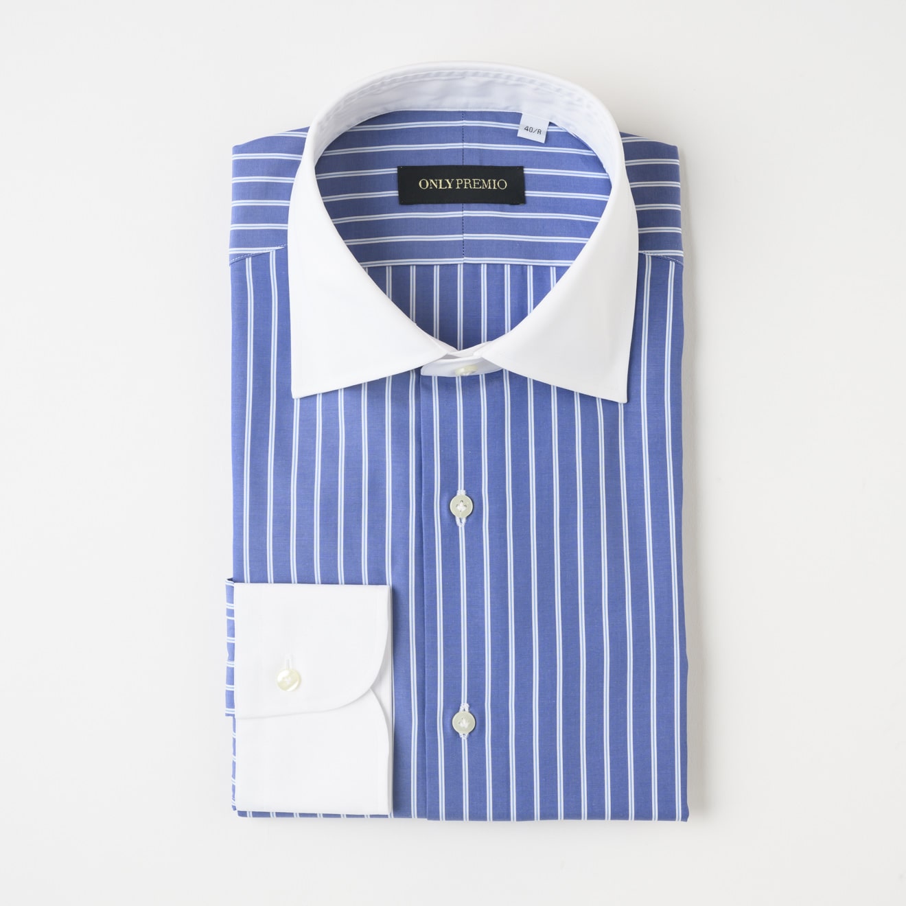 ≪WEB新作≫PREMIO/綿100%/クレリックシャツ/イタリアンレギュラー/ブルー/ストライプ/シャツ