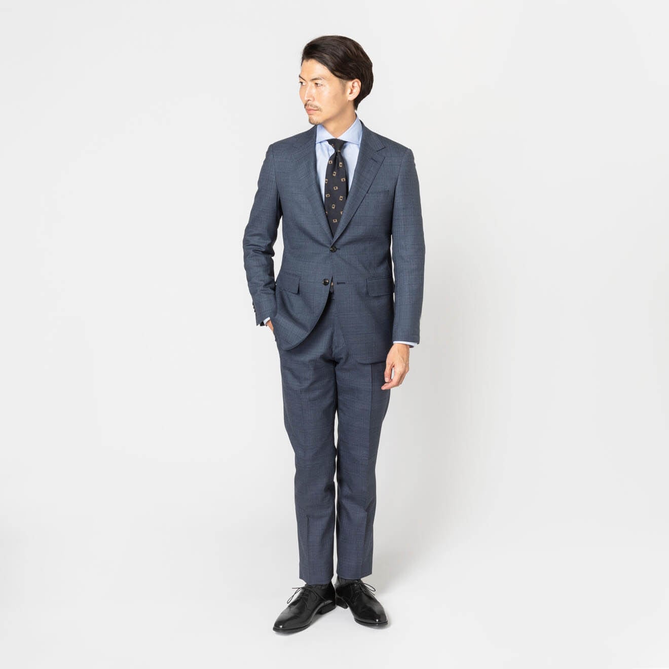 ≪WEB新作≫PREMIO/LoroPiana/ロロピアーナ/シングル2釦//ワンタックスリム/ネイビー/チェック/春夏/スーツ