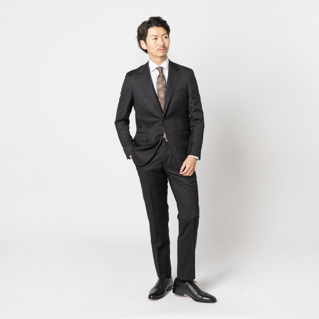 ≪WEB新作≫PREMIO/LoroPiana/ロロピアーナ/シングル2釦//ワンタックスリム/ブラック/ストライプ/春夏/スーツ