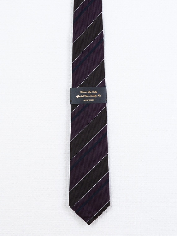 ≪WEB限定≫PREMIO/三巻き縫製/クラシック/シルク100%/パープル/ストライプ/タイ
