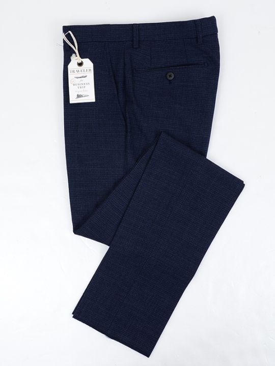 ≪WEB新作≫TRAVELER /洗える/ストレッチ/防シワ /ノータックスリム/ネイビー/チェック/春夏/パンツ