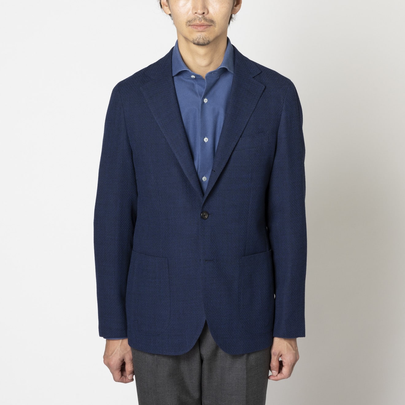 ≪WEB新作≫FABIO/ファビオ/ストレッチ/ウール/ブルー/柄無地/春夏/ジャケット