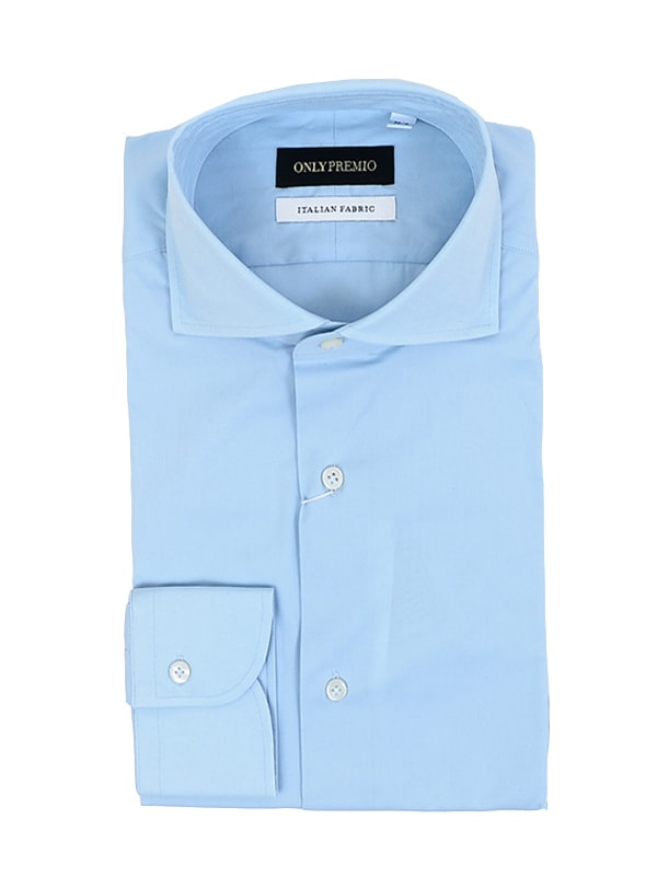 ≪WEB特別≫PREMIO/スリムフィット/イタリアンショートレギュラー/サックス/無地/シャツ