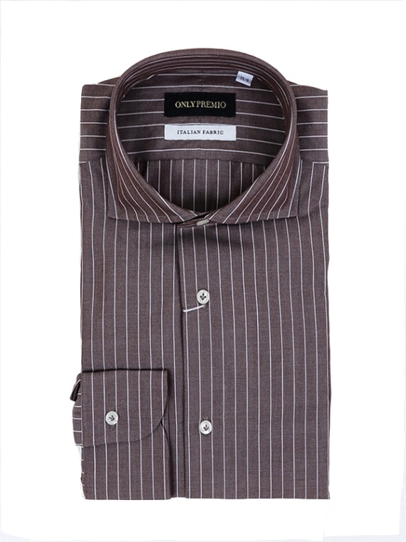 ≪WEB特別≫PREMIO/ ITALIAN FABRIC/ホリゾンタル/ブラウン/ストライプ/シャツ