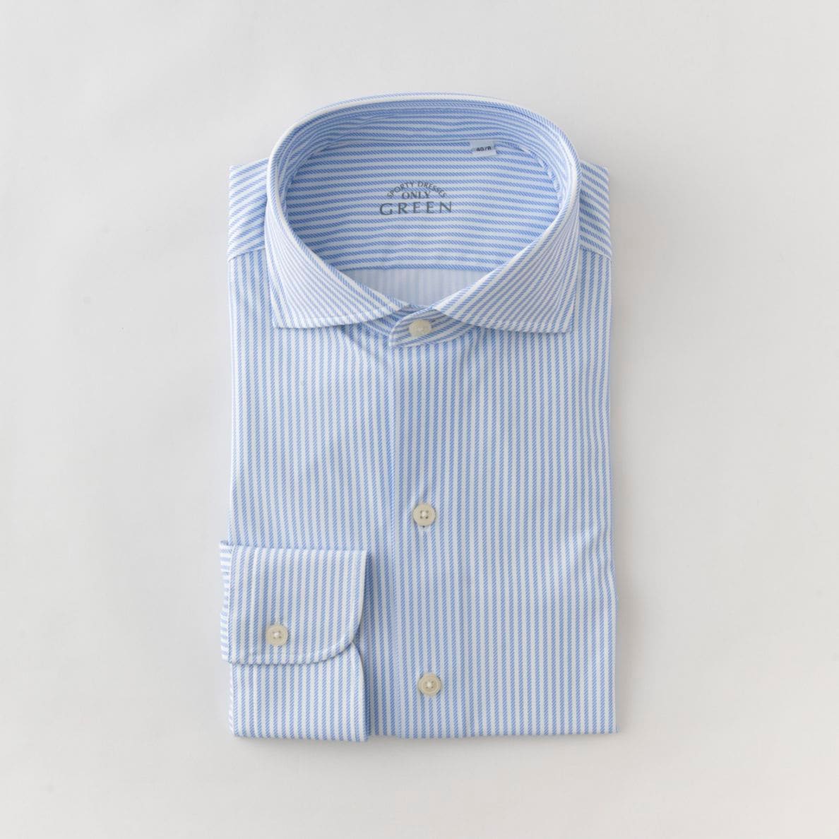 ≪WEB新作≫驚異の伸縮性/GREEN/ホリゾンタル/ナイロン/ストレッチ/サックス/ストライプ/シャツ