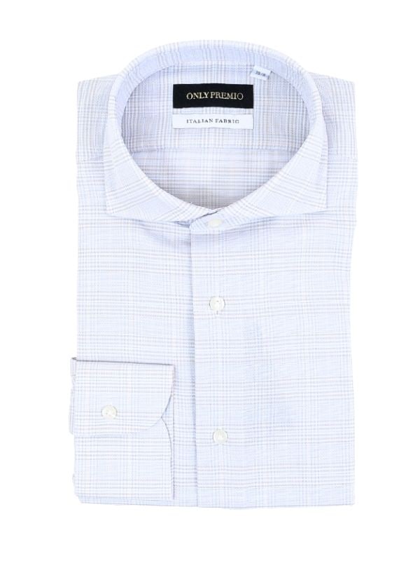 ≪WEB新作≫PREMIO/ ITALIAN FABRIC/ホリゾンタル/ベージュ/チェック/シャツ