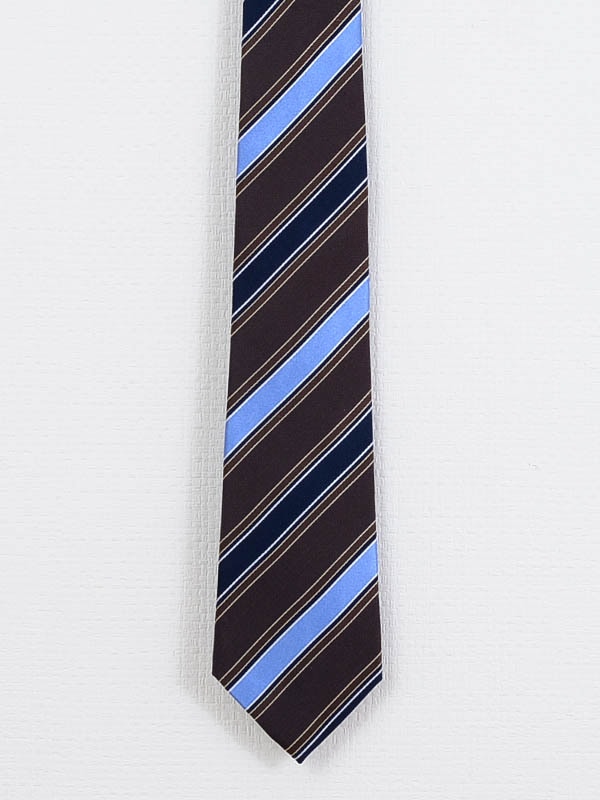 ≪WEB価格≫イタリア製/シルク100%/ブラウン/ストライプ/タイ