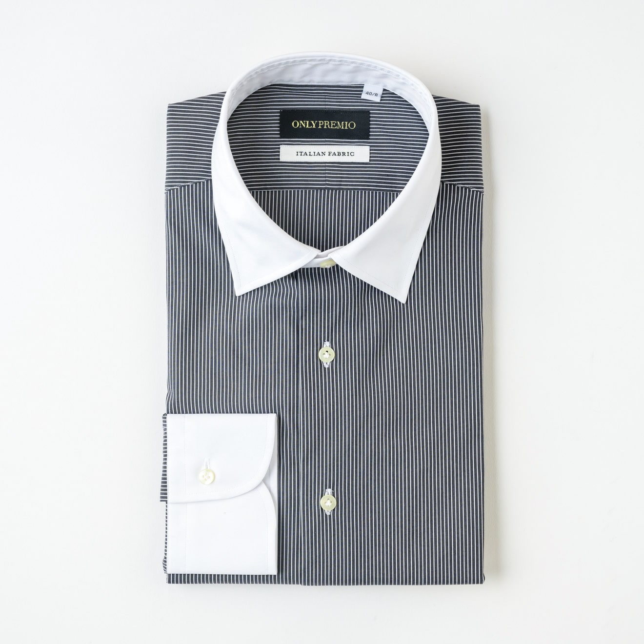 ≪WEB新作≫PREMIO/ITALIAN FABRIC/レギュラークレリック/ブラック/ストライプ/シャツ