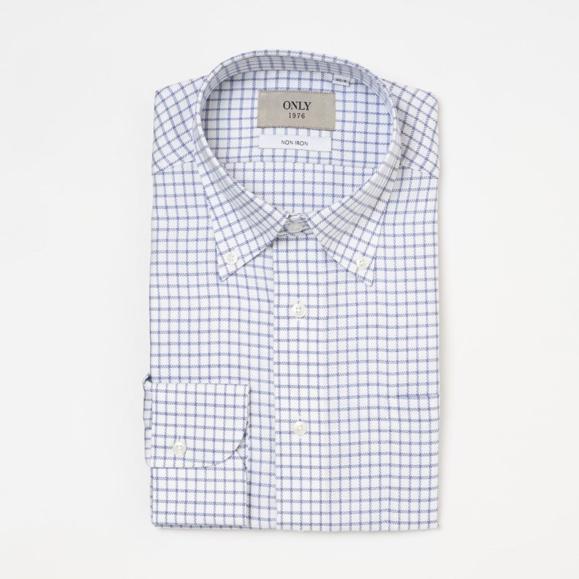 ≪WEB特価≫形態安定/EASY CARE/スリムフィット/綿100%/ノンアイロン/ボタンダウン/ブルー/チェックシャツ