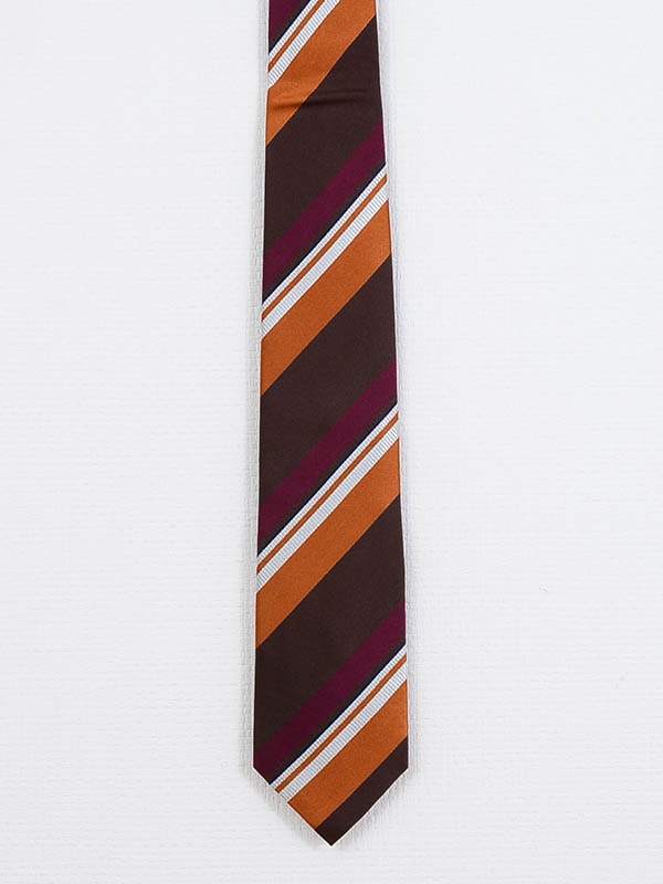 ≪WEB価格≫イタリア製/シルク100%/ブラウン/ストライプ/タイ