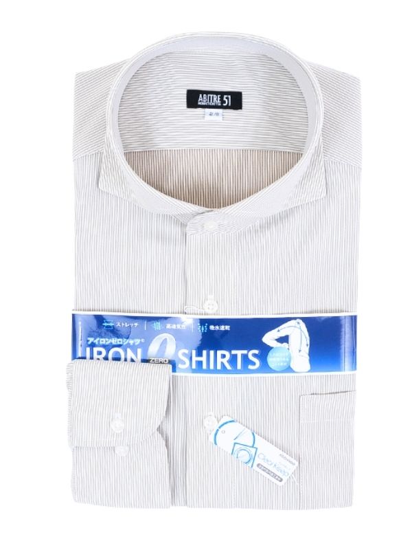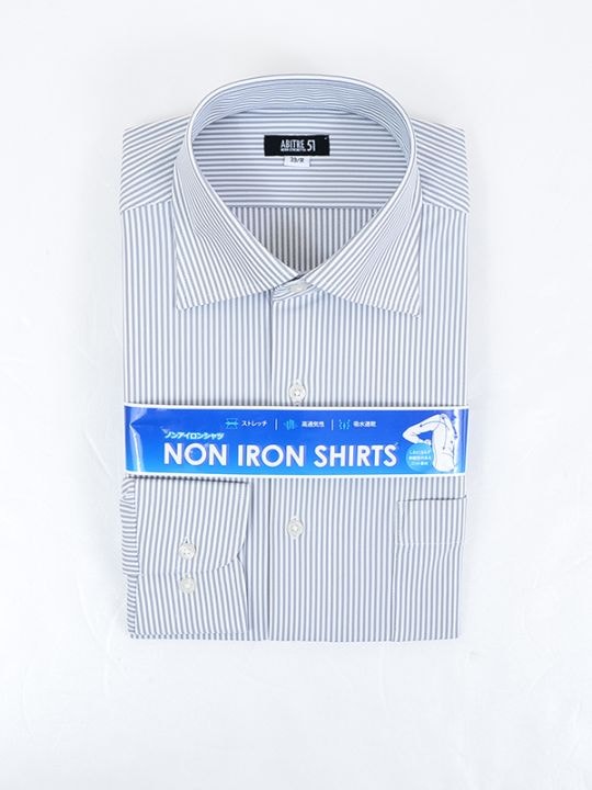 ≪WEB価格≫ノンアイロン/ストレッチ/高通気性/吸水速乾/ワイド/グレー/ストライプ/シャツ