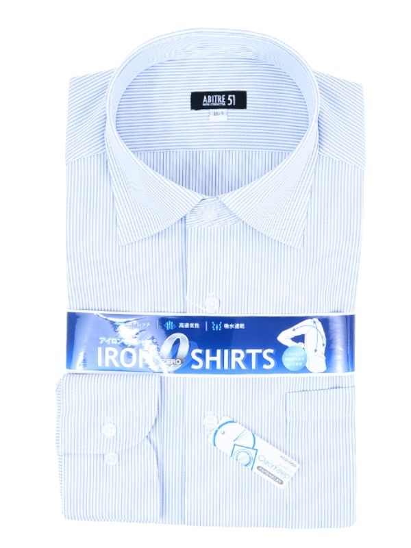 ≪WEB価格≫ノンアイロン/ストレッチ/高通気性/吸水速乾/セミワイド/ブルー/柄無地/シャツ