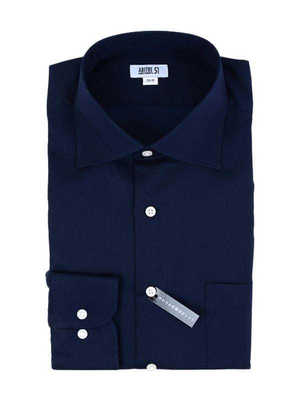 ≪WEB新作≫綿混/やわらか/形態安定/ワイド/ネイビー/無地/シャツ