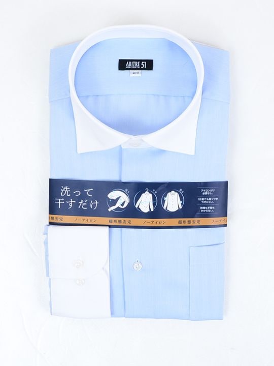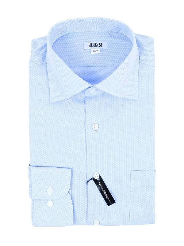 ≪WEB価格≫ノンアイロン/ストレッチ/高通気性/吸水速乾/ワイドカラー/サックス/無地/シャツ