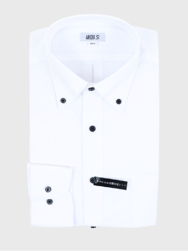 ≪WEB新作≫綿混/やわらか/形態安定/ボタンダウン/ホワイト/柄無地/シャツ
