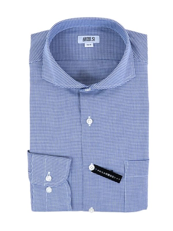 ≪WEB新作≫綿混/やわらか/形態安定/ワイド/ブルー/柄無地/シャツ