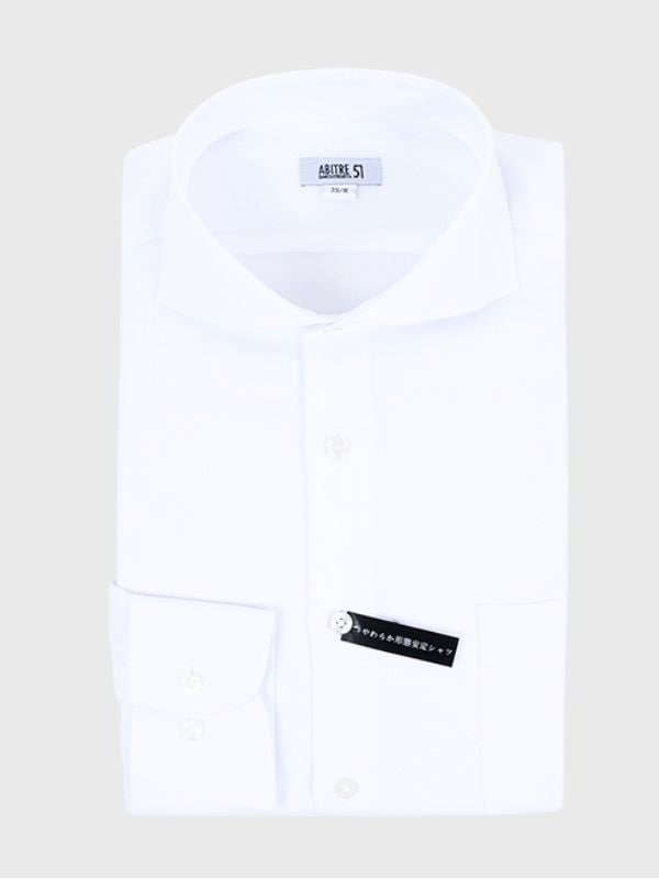 ≪WEB価格≫ノンアイロン/ストレッチ/高通気性/吸水速乾/ワイド/ホワイト/無地/シャツ