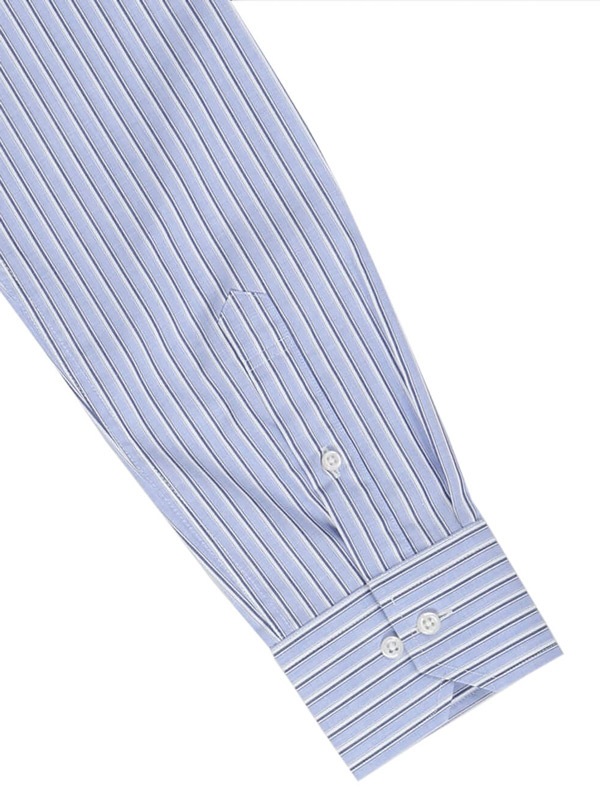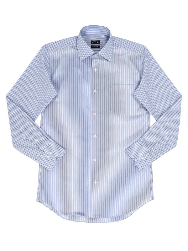 ≪WEB新作≫PREMIO/EASYCARE/形態安定/スリムフィット/ホリゾンタルカラー/サックス/ストライプ/シャツ