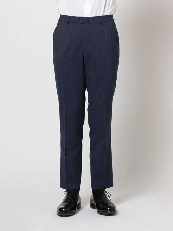 ≪歳末SALE≫2着10%OFF/驚き伸縮/超ストレッチ/パンツ洗える/ウエスト伸縮/ストレッチ/ネイビー/チェック/B体展開/スーツ