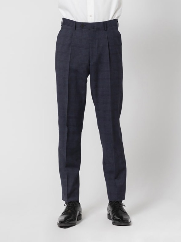 ≪歳末SALE≫2着10%OFF/驚き伸縮/超ストレッチ/パンツ洗える/ウエスト伸縮/ストレッチ/ネイビー/チェック/B体展開/スーツ