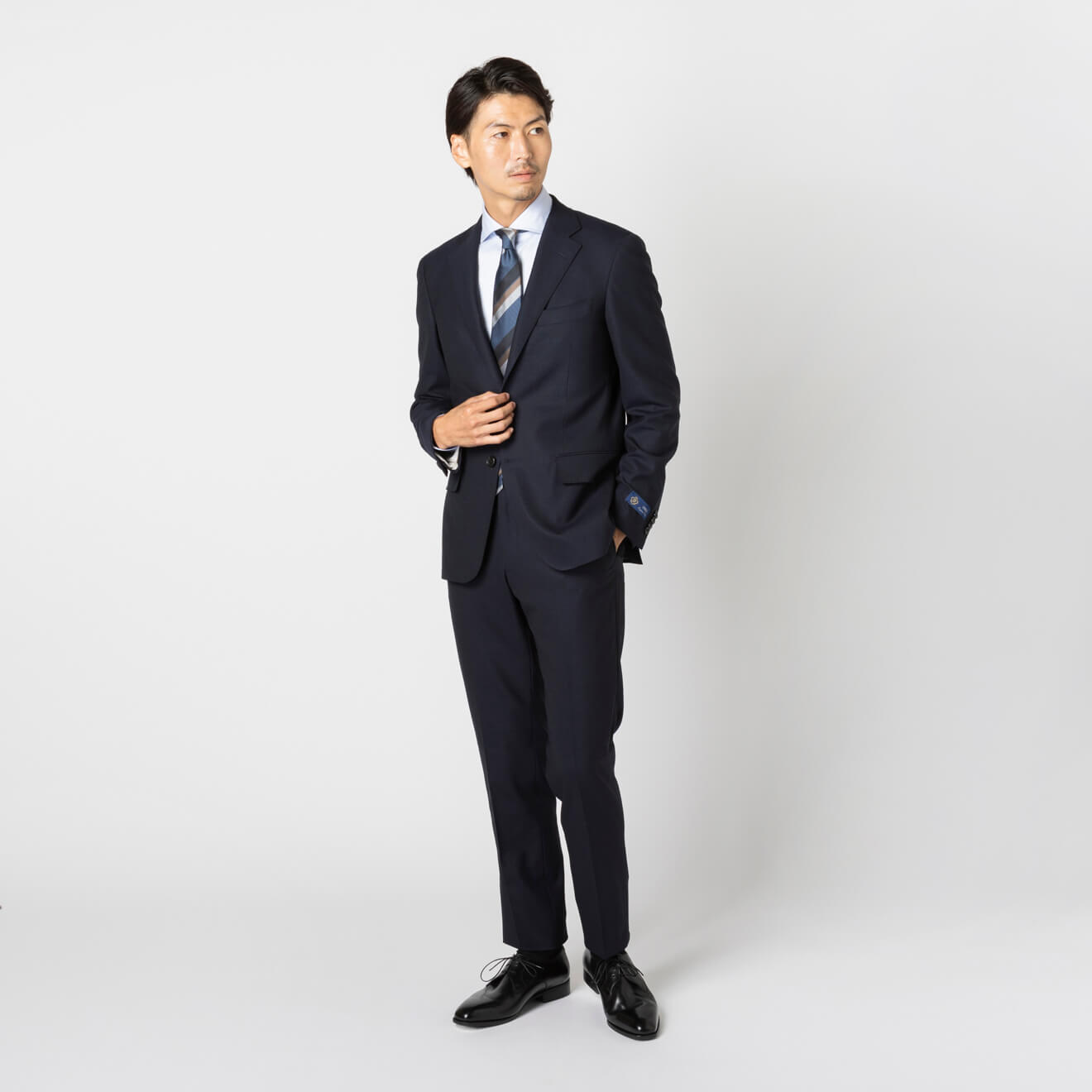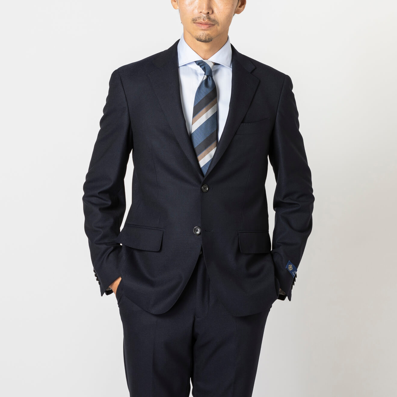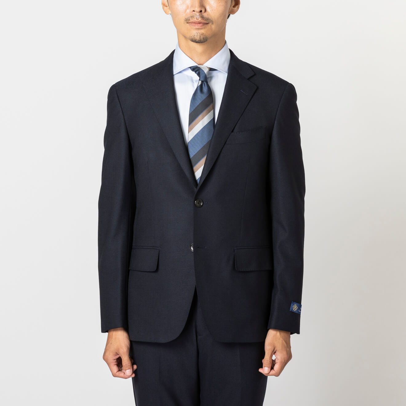 ≪WEB新作≫西川毛織/極トロピカル/軽量性/通気性/シングル2釦/ワンタックスリム/ネイビー/無地/春夏/スーツ