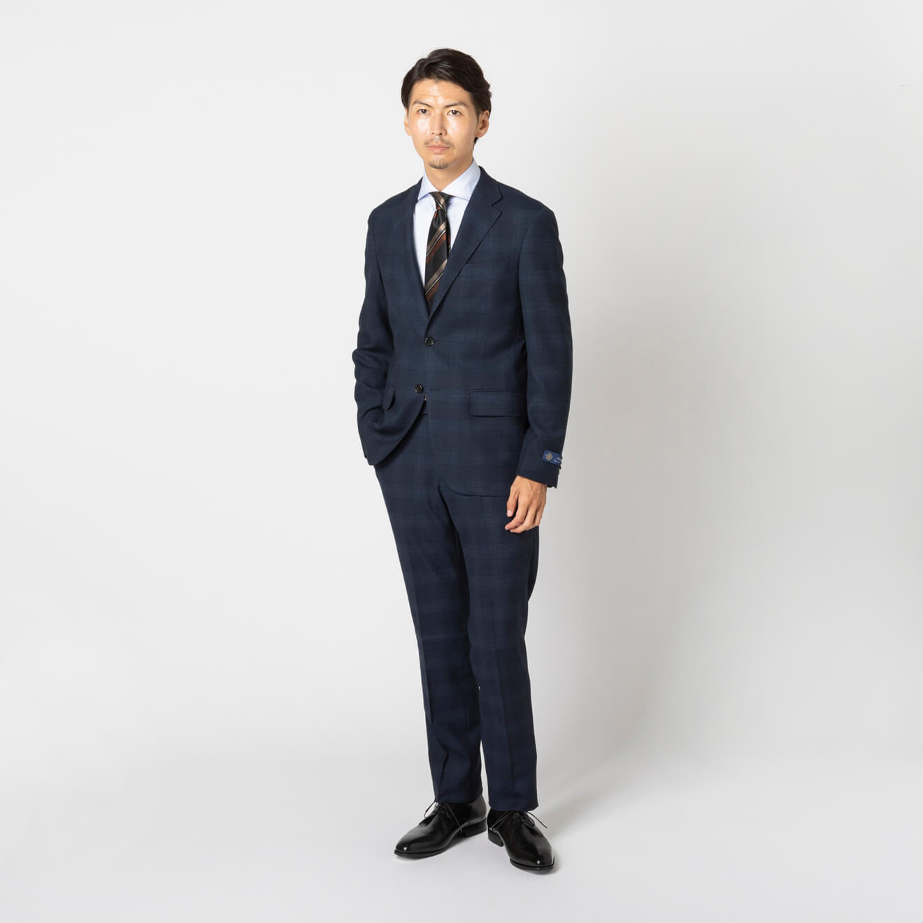 ≪WEB新作≫西川毛織/極トロピカル/軽量性/通気性/シングル2釦/ワンタックスリム/ネイビー/無地/春夏/スーツ