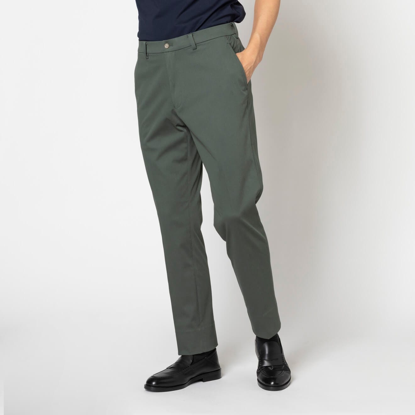 ≪WEB特別≫GREEN/ジャージー/ストレッチ/ノータック/裾上げ済/グリーン/無地/春夏/パンツ