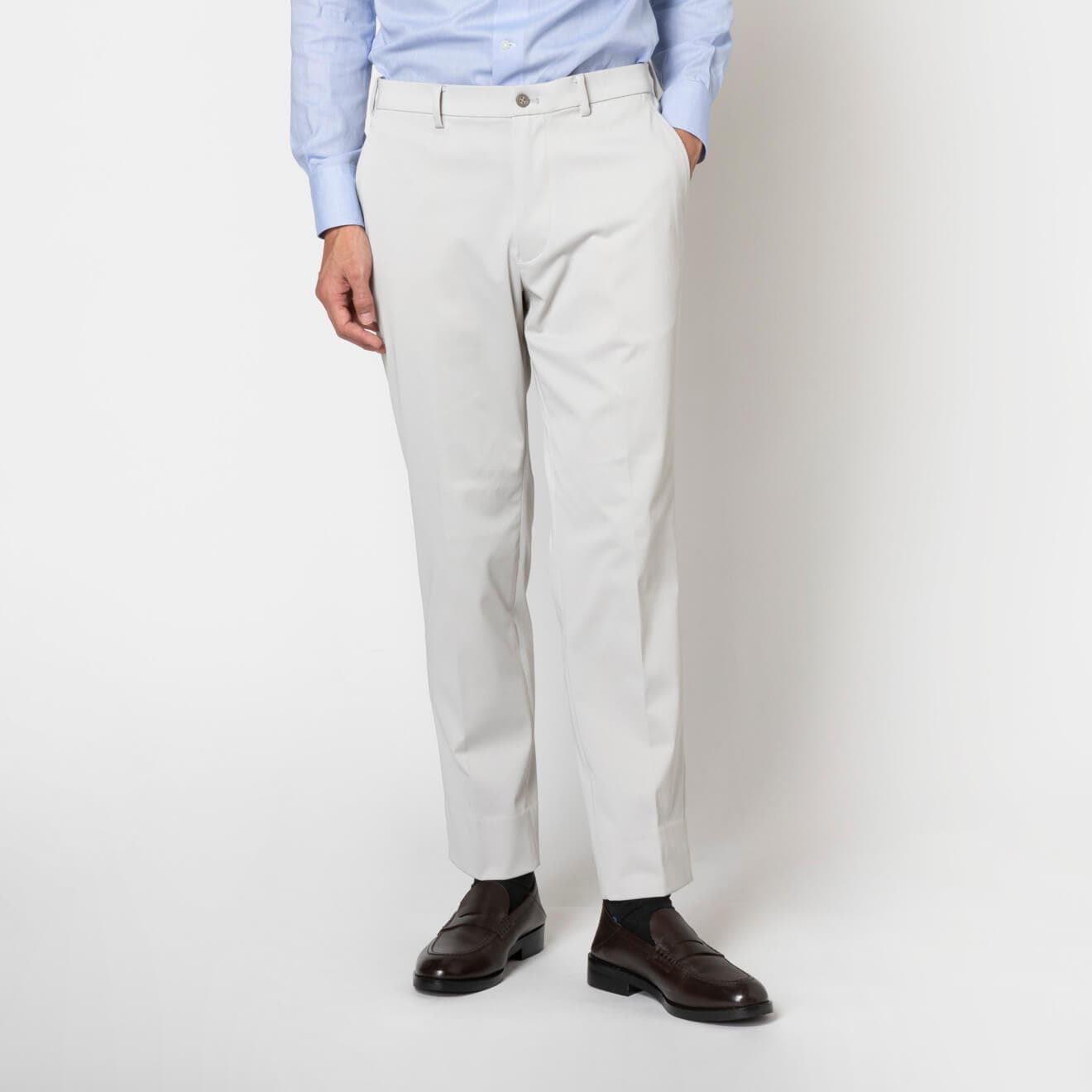 ≪WEB特別≫GREEN/ジャージー/ストレッチ/ノータック/裾上げ済/ライトグレー/無地/春夏/パンツ