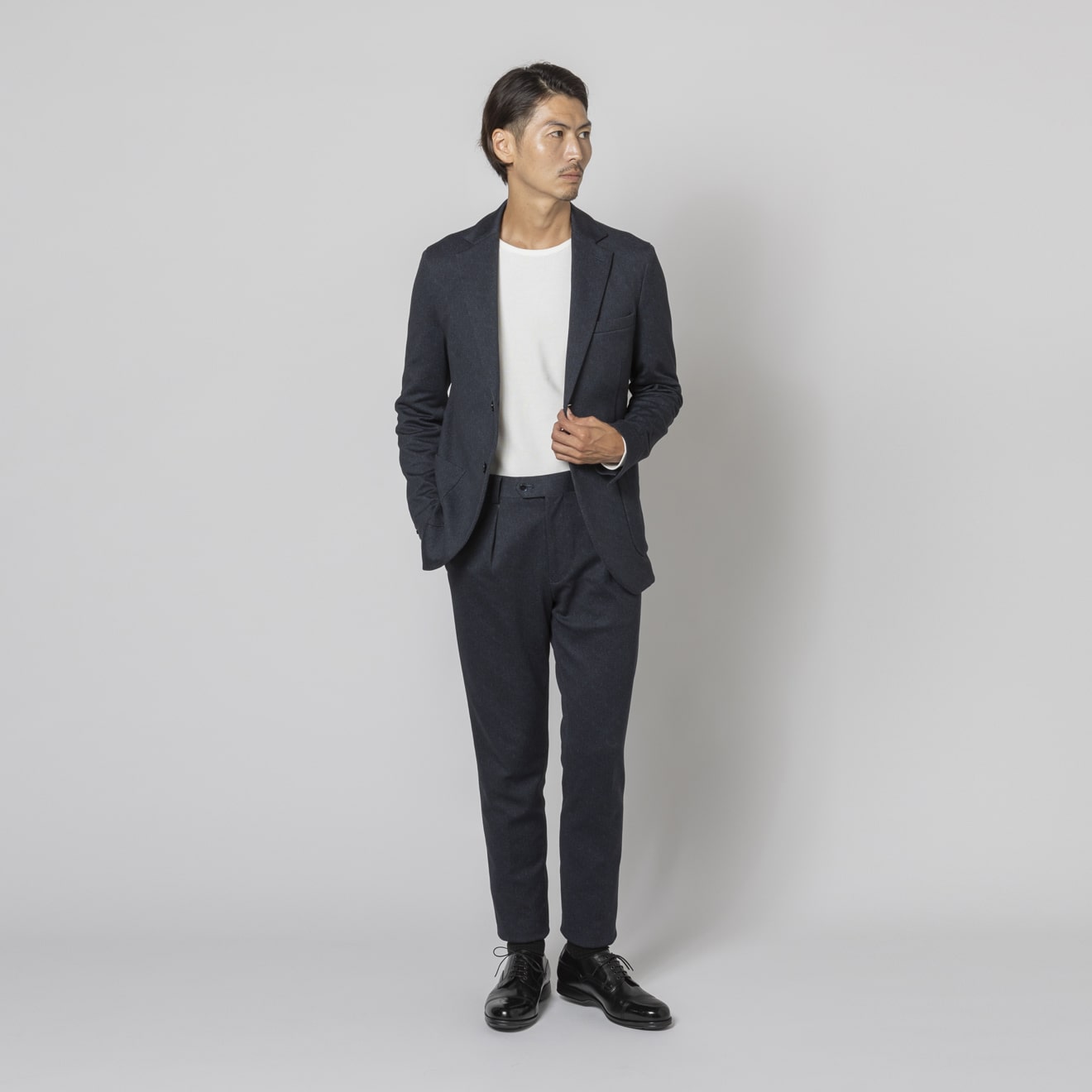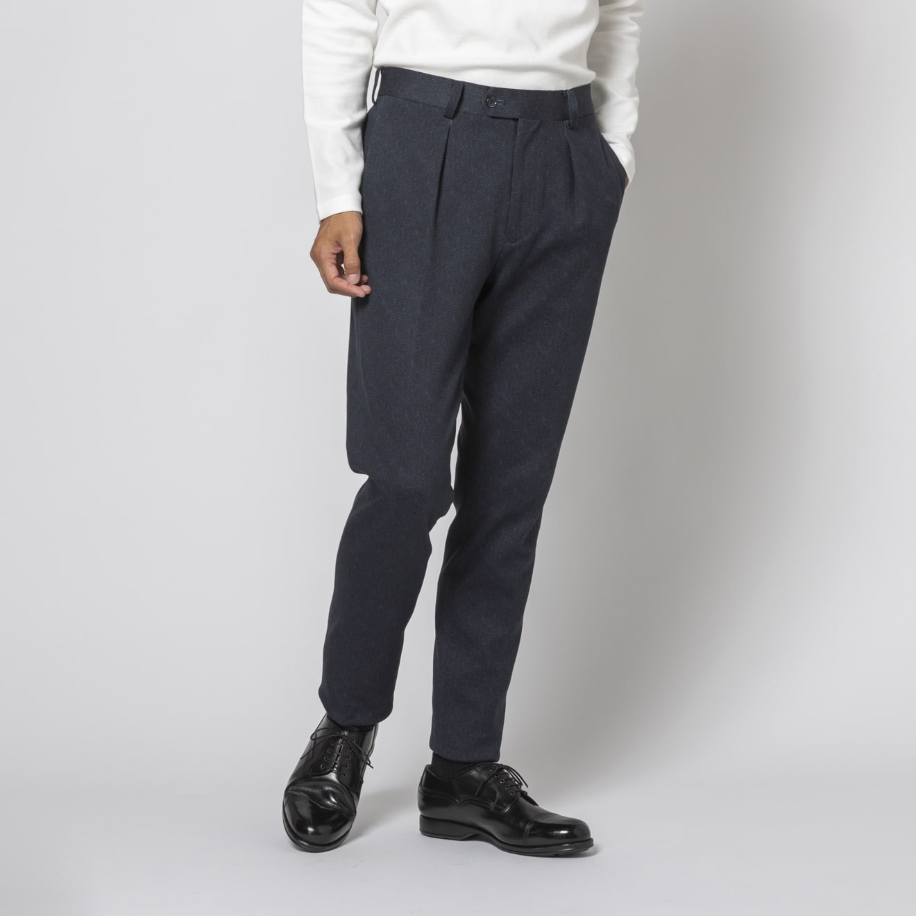 ≪歳末SALE≫メリノジャージー/千鳥/ストレッチ/ネイビー/柄無地/パンツ