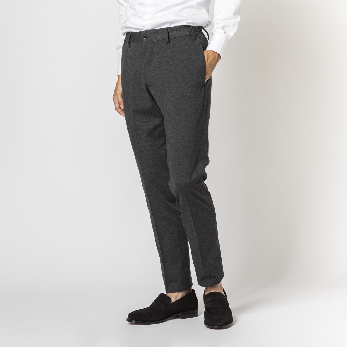 ≪WEB新作≫洗える/ジャージー/防シワ/ストレッチ/裾上げ済/グレー/柄無地/パンツ