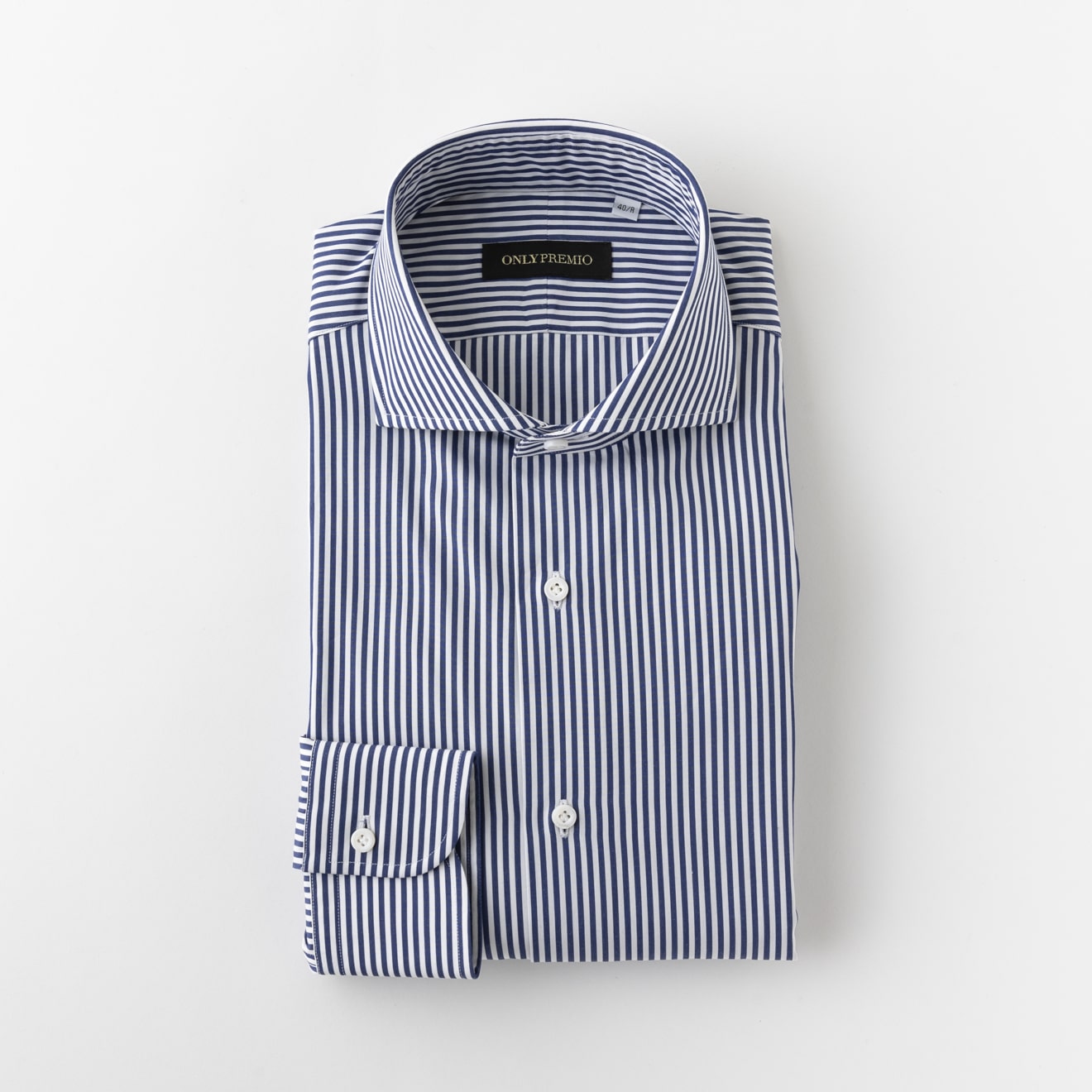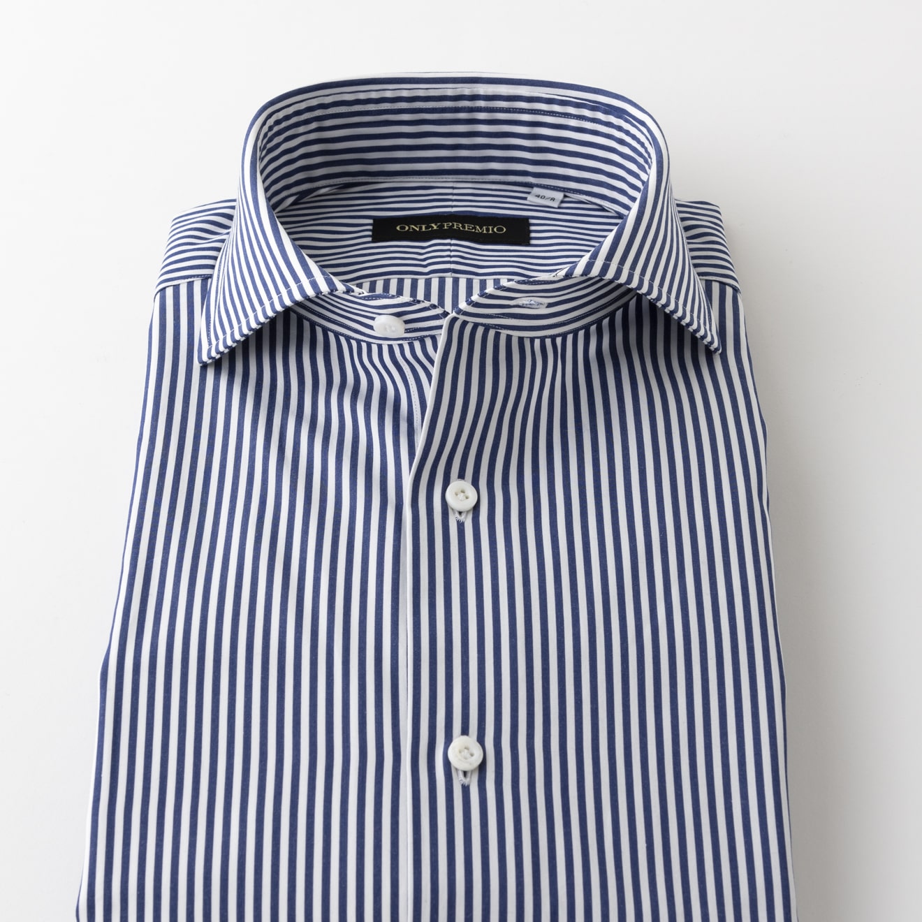 ≪WEB価格≫形態安定/EASY CARE/スリムフィット/ワイドスプレッド/ネイビー/ストライプ/シャツ