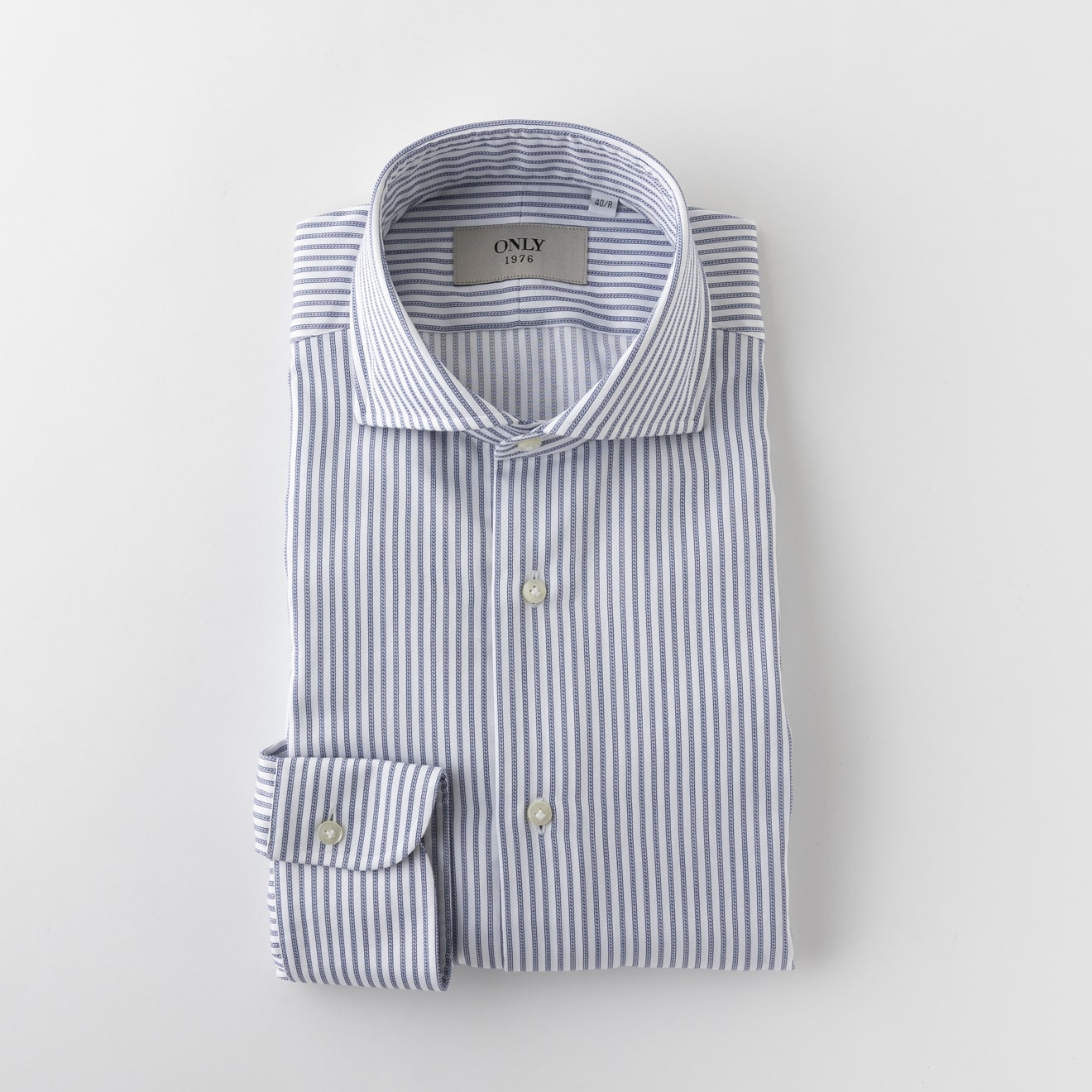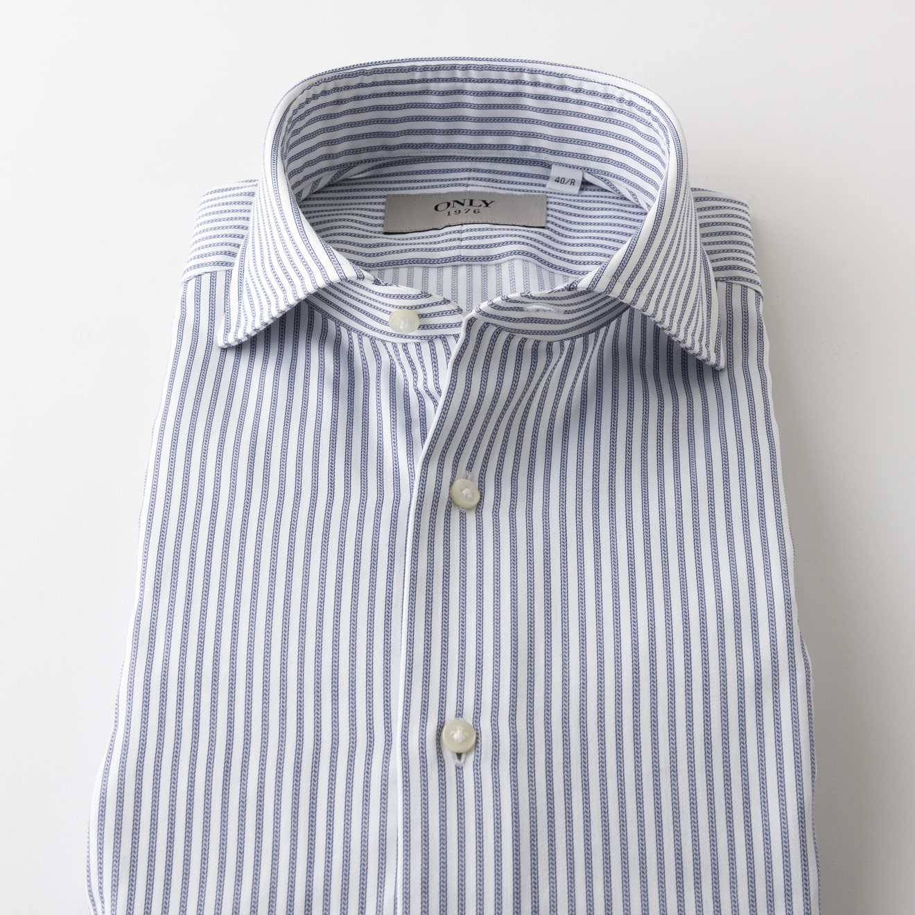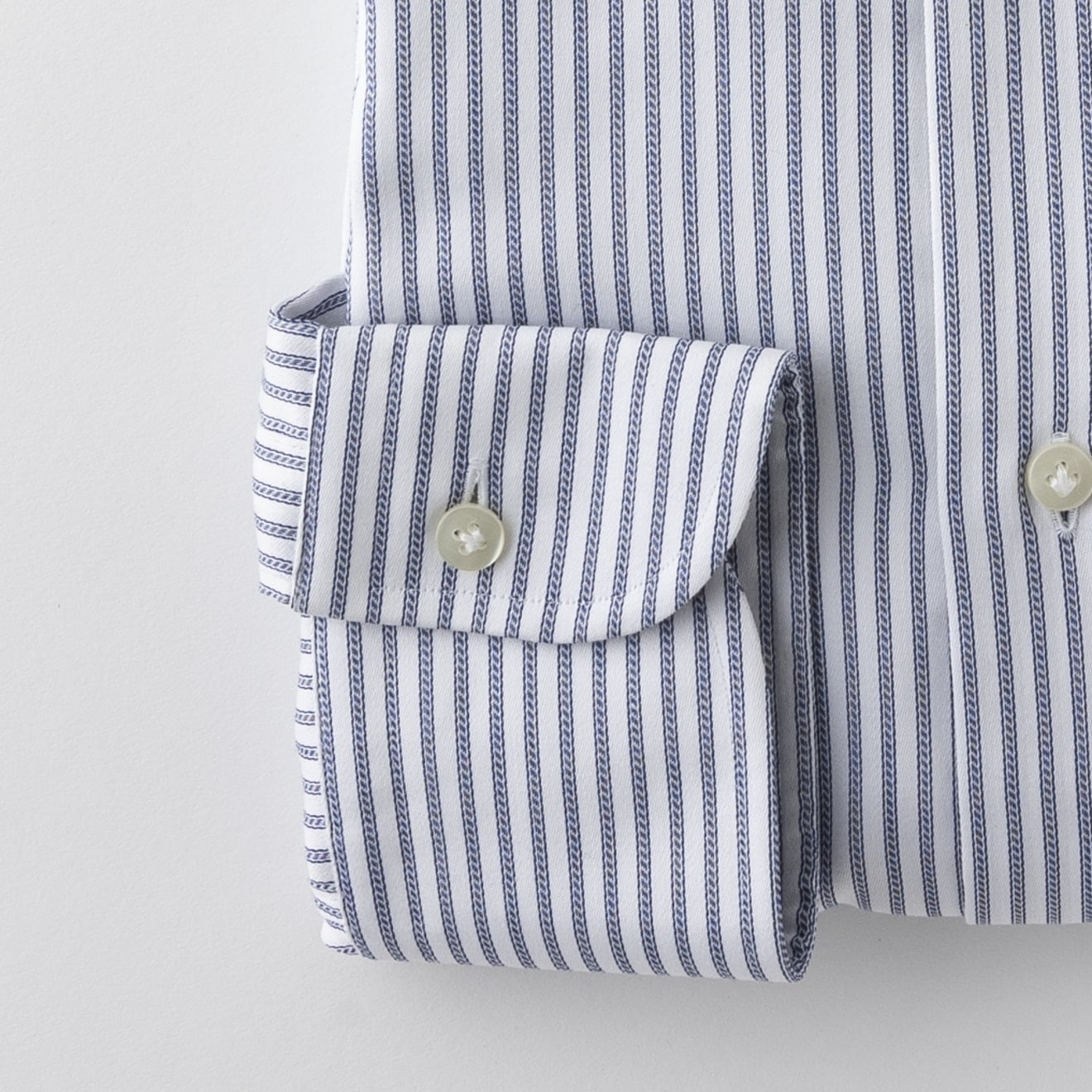 コットンの100番手双糸で織り上げたブロードクロスをベースに、形態安定加工を施したイージーケアシャツ。