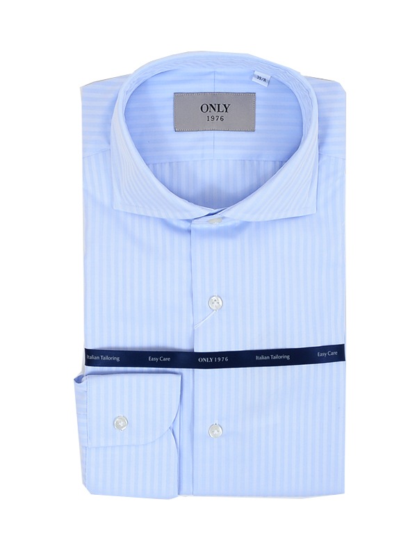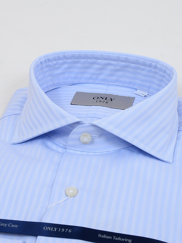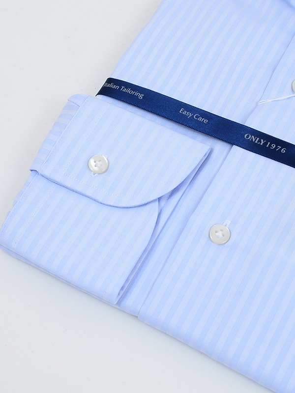 コットンの100番手双糸で織り上げたブロードクロスをベースに、形態安定加工を施したイージーケアシャツ。