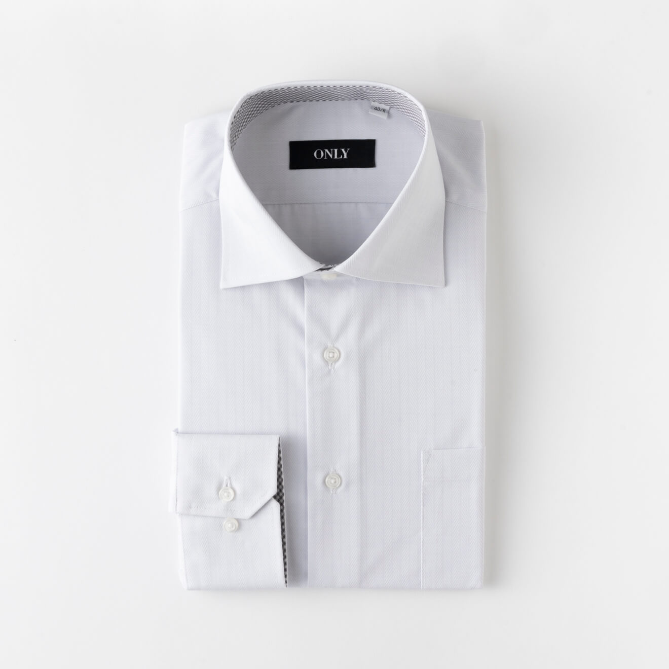全体にヘリンボーン柄を配したシャツ。