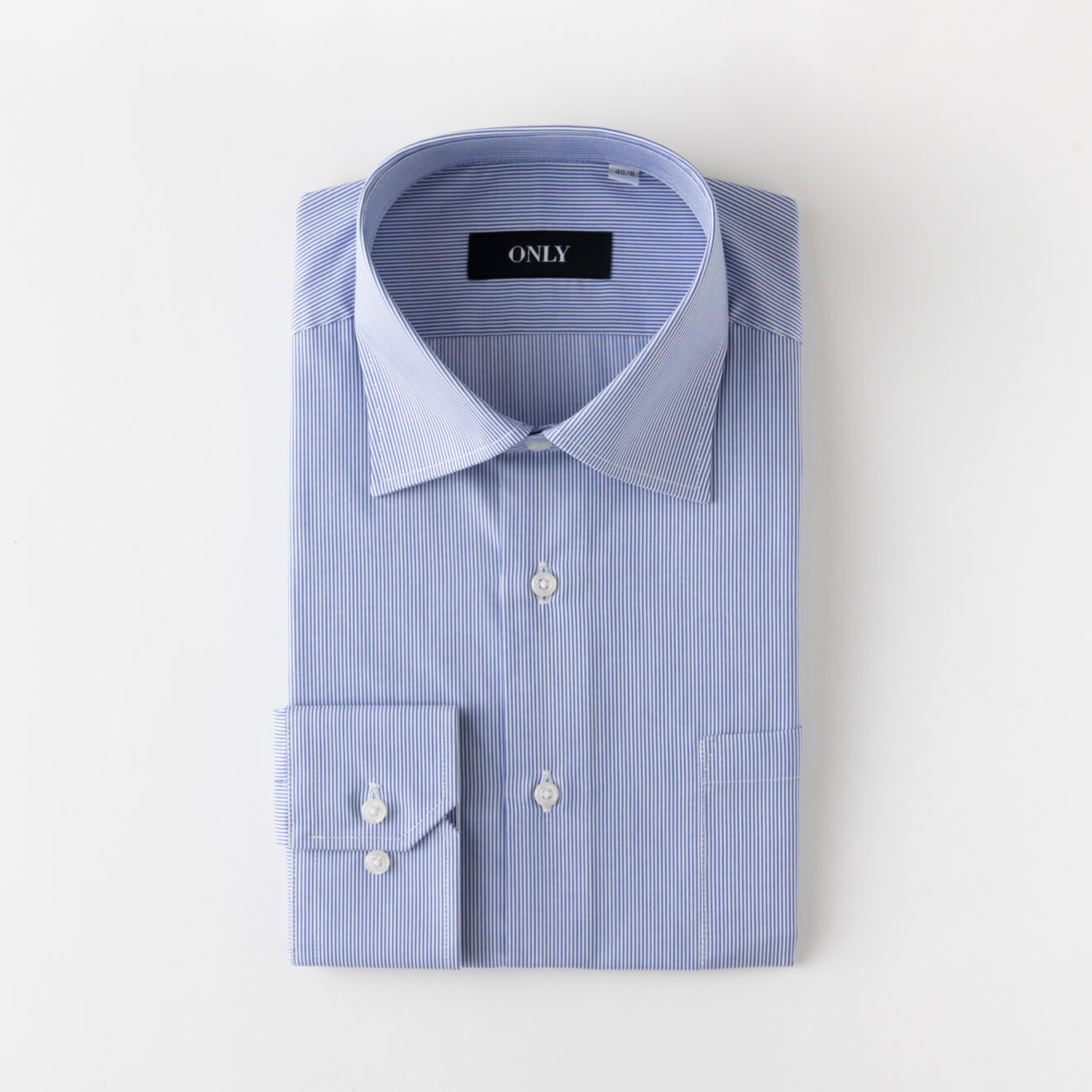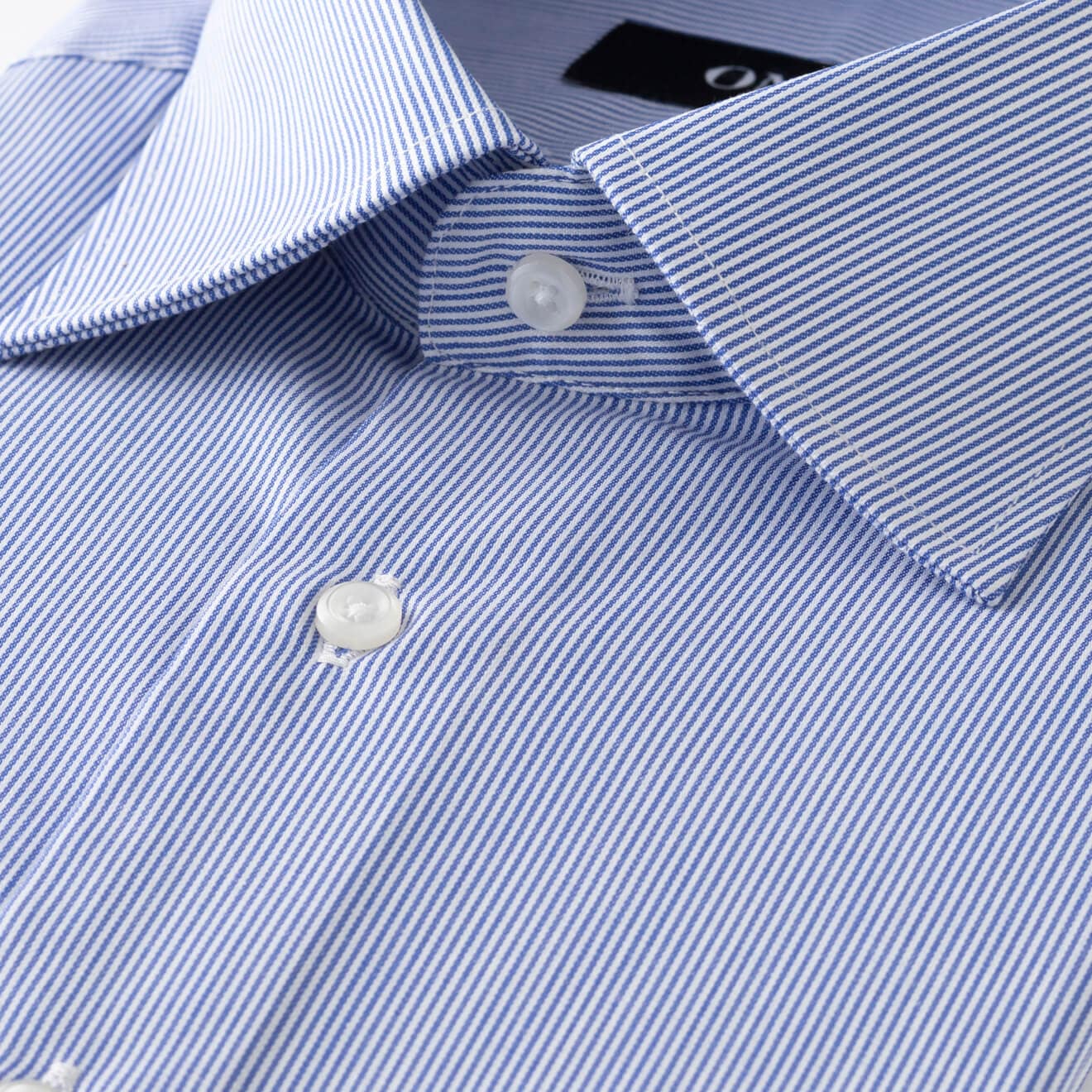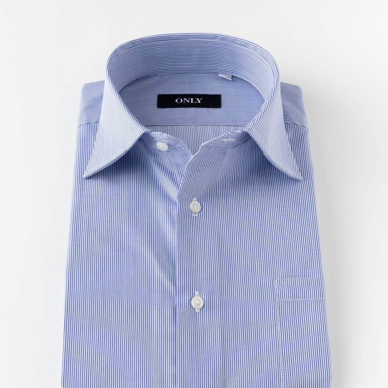 ≪WEB限定≫PREMIO/綿100%/スリムフィット/ボタンダウンカラー/ブルー/ストライプ/シャツ
