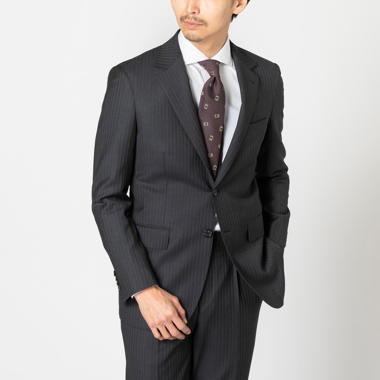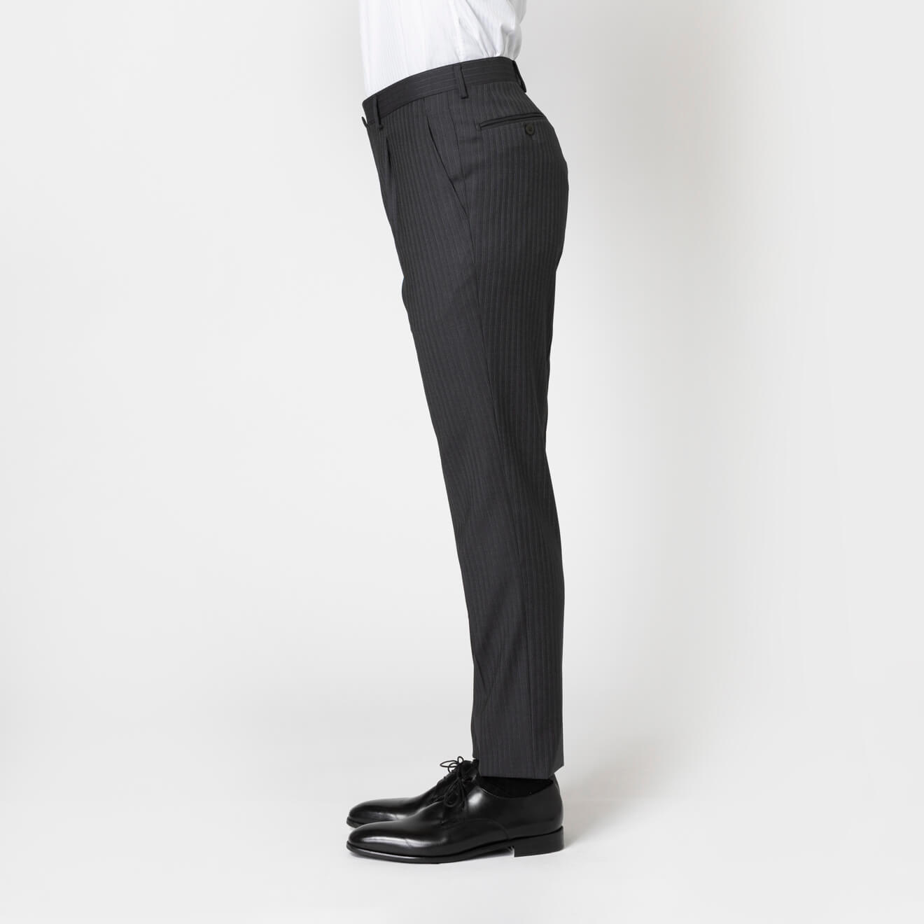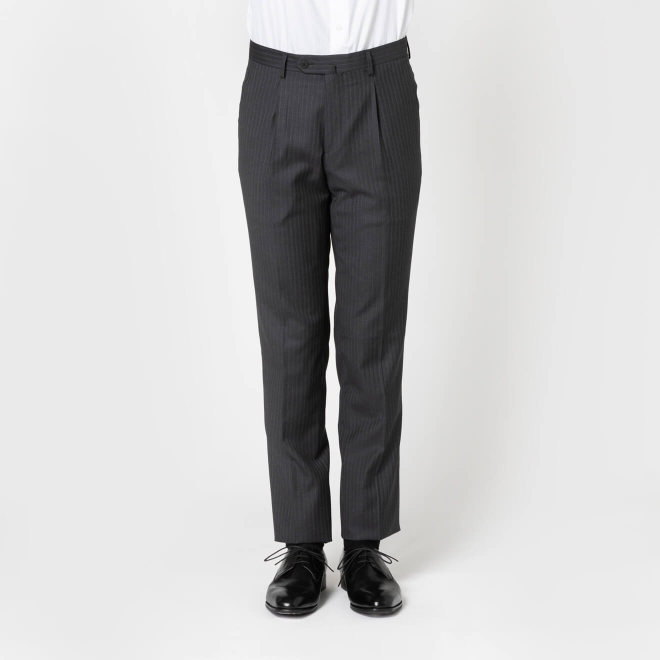 ≪WEB新作≫PREMIO/LoroPiana/ロロピアーナ/シングル2釦//ワンタックスリム/ライトグレー/ストライプ/春夏/スーツ