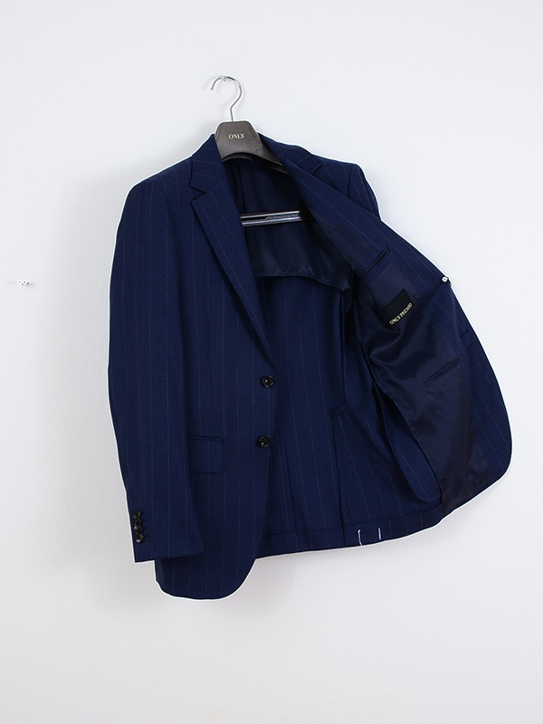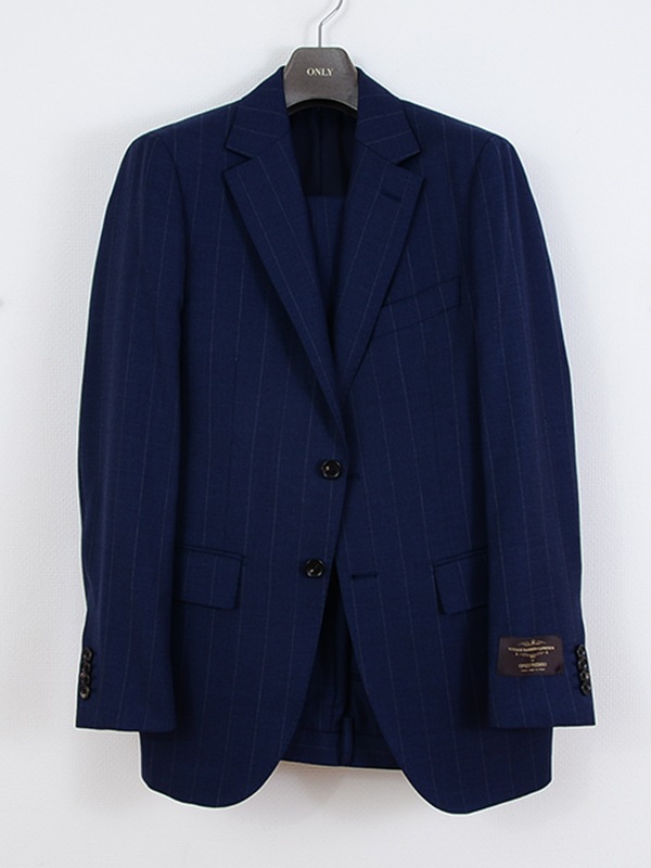 ≪WEB半額≫PREMIO/LoroPiana/ロロピアーナ/シングル2釦//ワンタックスリム/ネイビー/ストライプ/春夏/スーツ