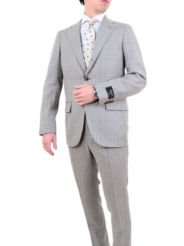 ≪歳末SALE≫2着10%OFF/MARZOTTO/マルゾット/段返り3釦/ワンタックスリム/グレー/チェック/スーツ