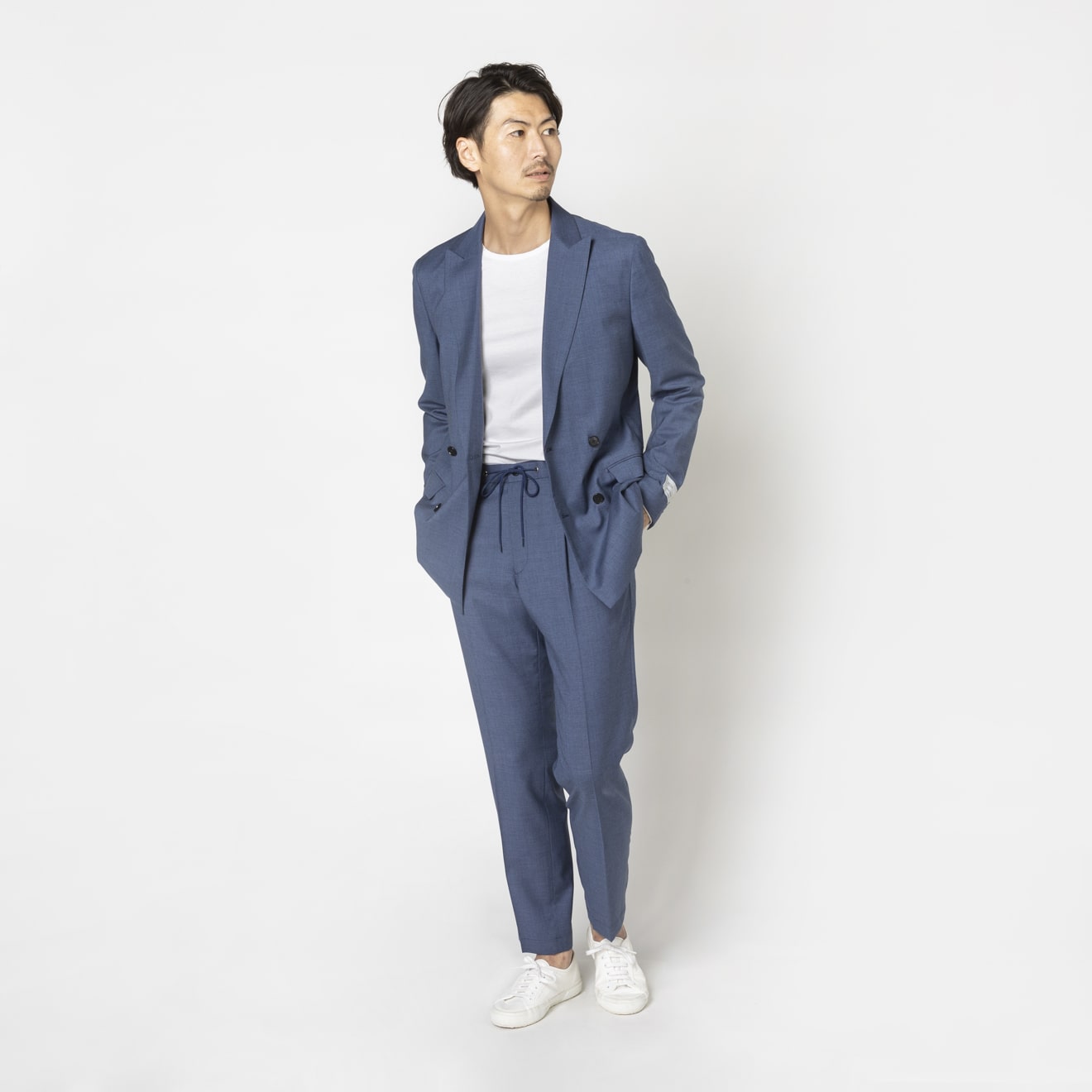 ≪WEB新作≫PAULO OLIVEIRA/シングル2つ釦/ストレッチ/ブルー/無地/レディース/春夏/ジャケット
